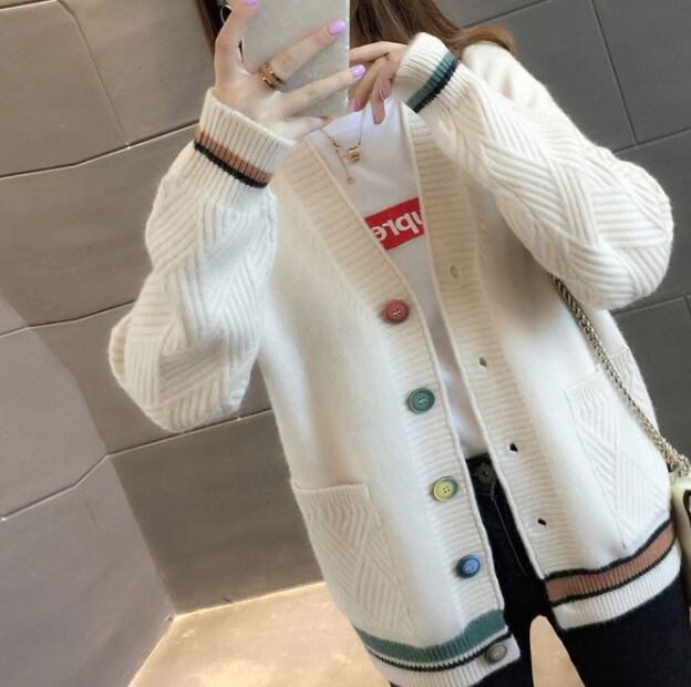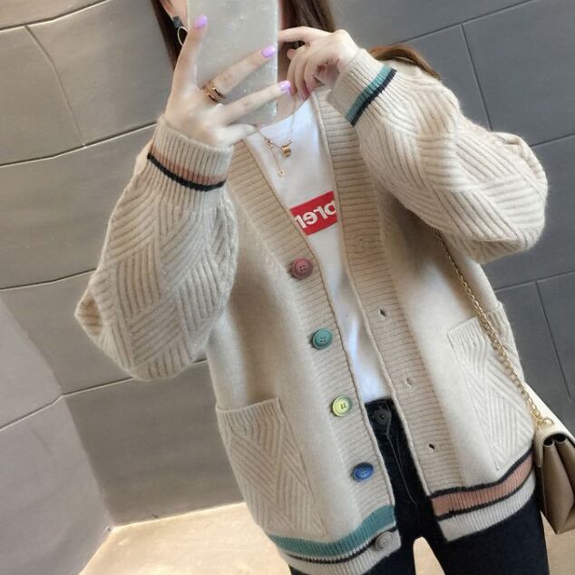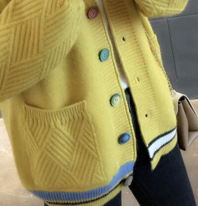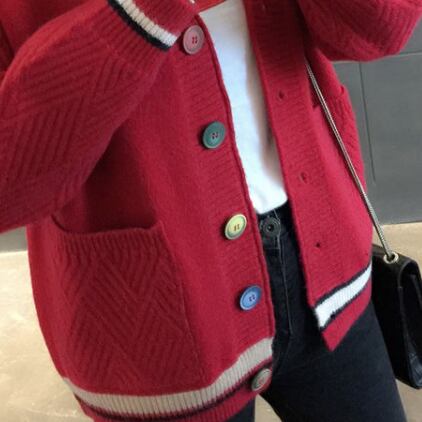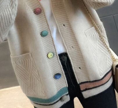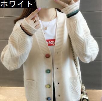 レトロ ボタン Vネック ニット カーディガン ホワイト 白 イエロー 黄色 ブルー 青 水色 カーキ ブラック 黒 レッド 赤 トップス 袖あり 長袖 萌袖 かわいい 大人可愛い シンプル カジュアル 大人 上品 おしゃれ お洒落 大人女子 こなれ感 キュート ガーリー 主役級 存在感 秋 冬 2021 レディース 女性用 学生 通学 デート 休日 お出かけ 女子会 イベント 旅行 着回し 普段使い 定番 韓国系 モテ トレンド 流行 インスタ映え おすすめ インポート S M L XL 2XL 3XL