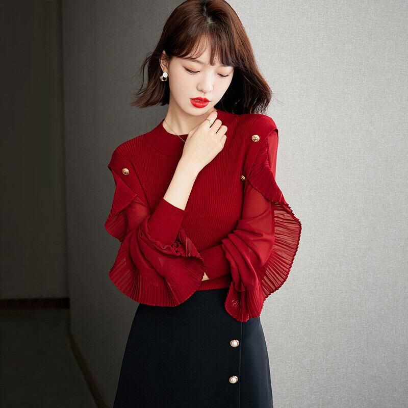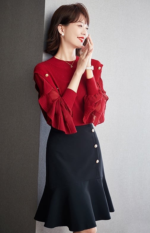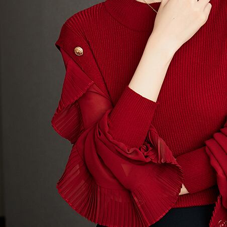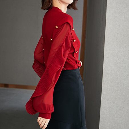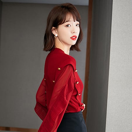 鮮やかなレッドが目を惹くデザイン性トップスです。
