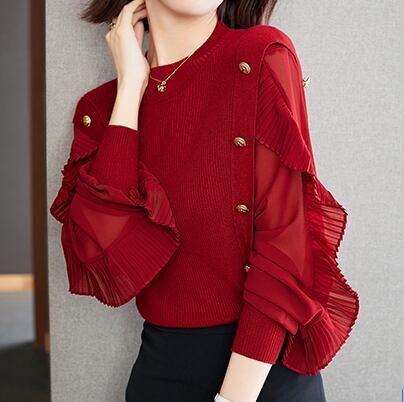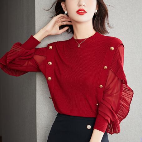 リブニット トップス ニットソー 袖あり ラウンドネック 襟なし 切り替えデザイン ドッキング シフォン リブ かわいい 大人可愛い きれいめ 大人 上品 おしゃれ お洒落 レトロ 大人可愛い 大人女子 キュート ガーリー 個性的 セクシー エレガント 主役級 存在感 春 夏 秋 入学式 入園式 卒業式 卒園式 謝恩会 10代 20代 30代 40代 レディース ママ デート お出かけ 女子会 お泊まり 休日 イベント ホテル レストラン 韓国 韓国系 ファッション コーデ スタイル モテ 新作 定番