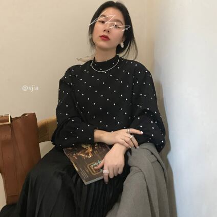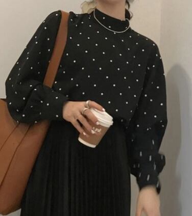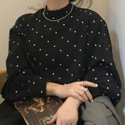 ドット柄長袖トップス トップス シャツ ブラウス カットソー 長袖 ハイネック かわいい 大人可愛い きれいめ シンプル カジュアル 大人 上品 おしゃれ かっこいい レトロ 大人可愛い 大人女子 こなれ感 キュート とろみ感 柄 ドット柄 春 秋 10代 20代 30代 40代 50代 レディース 女性用 ママ オフィス OL 通勤 学生 通学 デート お出かけ 公園デビュー 女子会 休日 着回し ファッション コーデ スタイル 楽ちん モテ 体系カバー ギフト 定番 流行 お得 合わせやすい 好感度