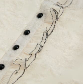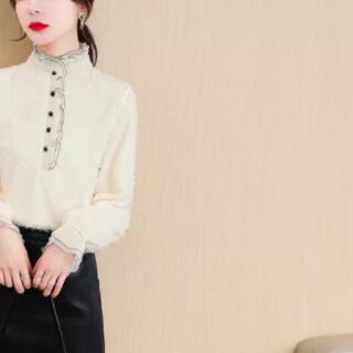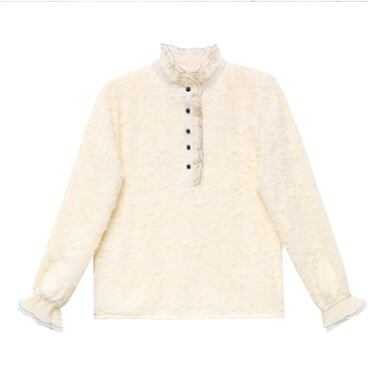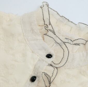 このデザインシャツは、フェミニンなレースやフリルを配した、大人女性にぴったりのトップスです。上品なアプリコットカラーに、レトロ風のデザインが主役級の存在感を放ちます。スタンドカラーやボタンも装飾的で、エレガントでありながらこなれ感もあるラフな着こなしにもぴったり。季節を問わず、秋冬はもちろん、春夏でも涼しげな生地感でさまざまなシーンで活躍します。