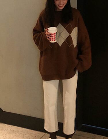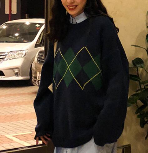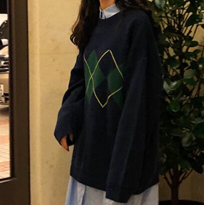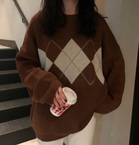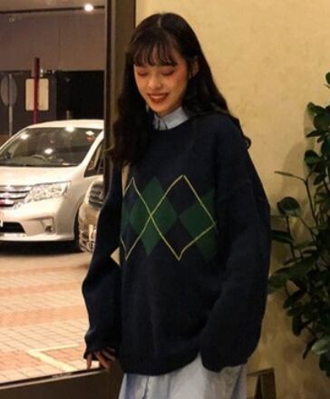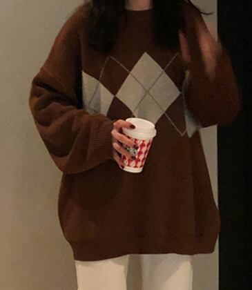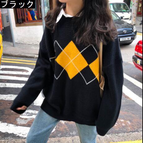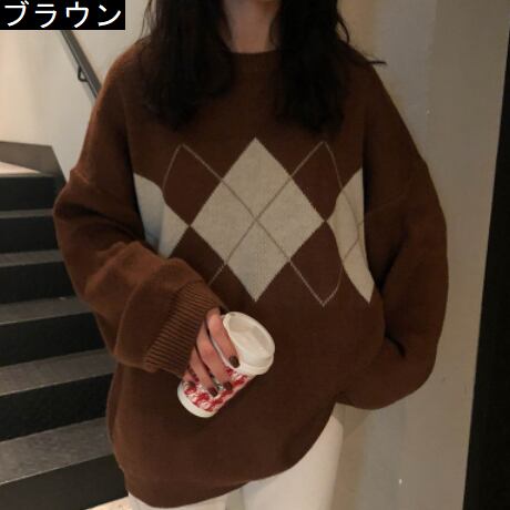 アーガイルゆったりニット トップス ニット セーター ロング 長袖 もこもこ かわいい きれいめ シンプル カジュアル 上品 おしゃれ かっこいい 大人女子 ラフ メンズライク マニッシュ ボーイッシュ ガーリー ルーズ 無地 柄 秋 冬 10代 20代 30代 40代 レディース ママ 通勤 学生 通学 デート お出かけ 公園デビュー 休日 お散歩 着回し 普段使い 重ね着 ファッション コーデ スタイル 楽ちん 暖かい 体系カバー プレゼント ギフト 定番 安い 流行 お得 合わせやすい 好感度