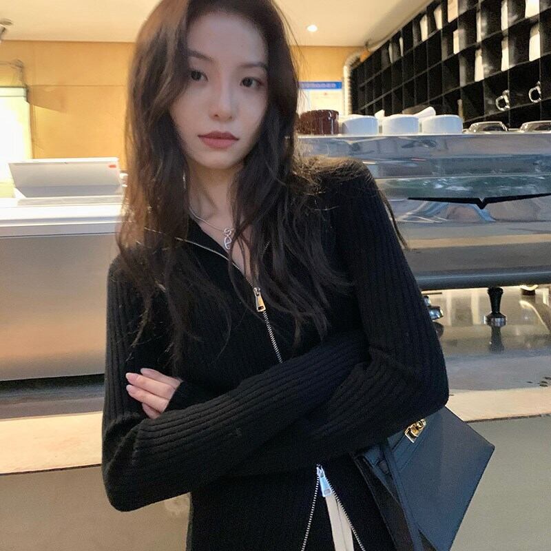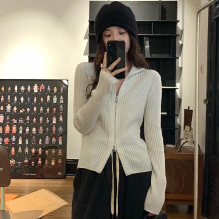 ジッパー付きニットトップス トップス ニット セーター カーディガン 長袖 Vネック スリム タイト 伸縮性 ニット かわいい 大人可愛い きれいめ シンプル カジュアル 大人 上品 おしゃれ かっこいい 大人可愛い 大人女子 こなれ感 無地 春 秋 冬 10代 20代 30代 40代 レディース 女性用 学生 通学 デート お出かけ 女子会 休日 お散歩 人気 着回し ファッション コーデ スタイル 楽ちん 暖かい モテ プレゼント ギフト 定番 流行 安い 合わせやすい 好感度 イメージアップ 清潔感