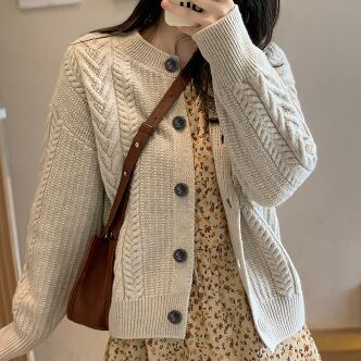 大人可愛い雰囲気が魅力のセーターカーディガンです。素材に厚手のニットを使用しているため、冬場はもちろん春秋にも着用可能です。落ち着いたグリーン、上品なアイボリー、おしゃれなレッドの豊富なカラーバリエーションで、コーディネートの幅も広がります。