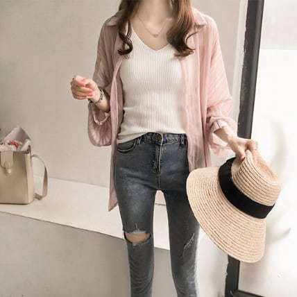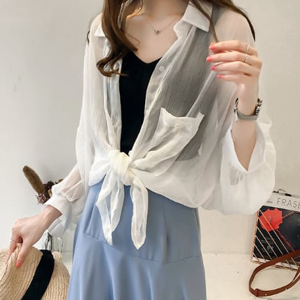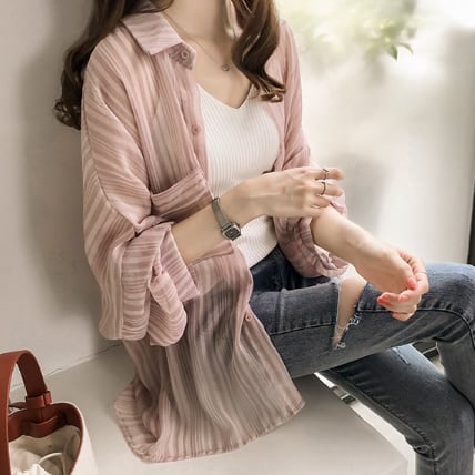 薄手のロング丈ブラウスです。