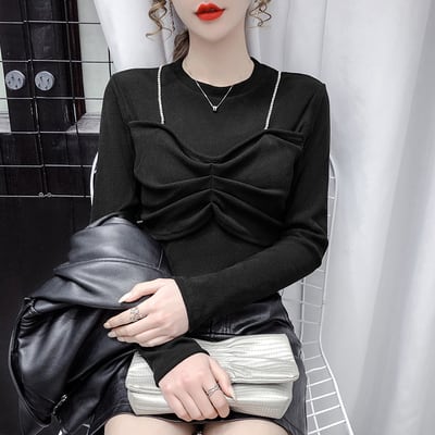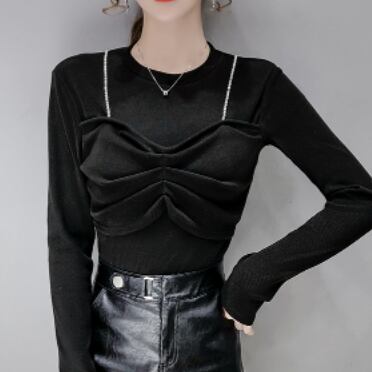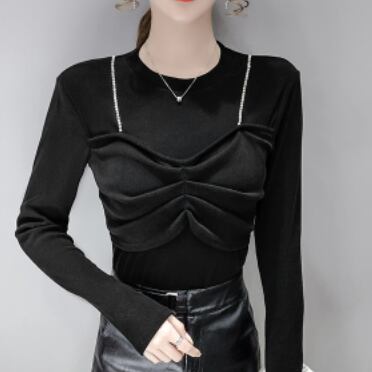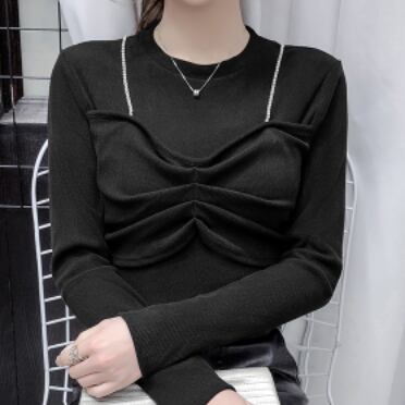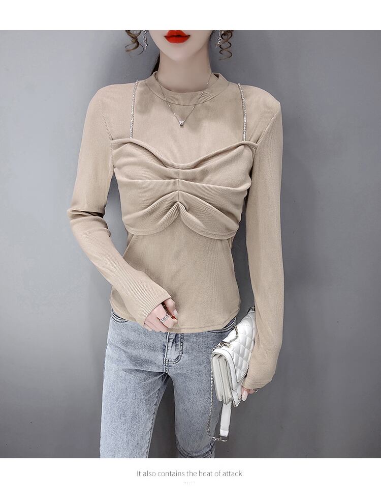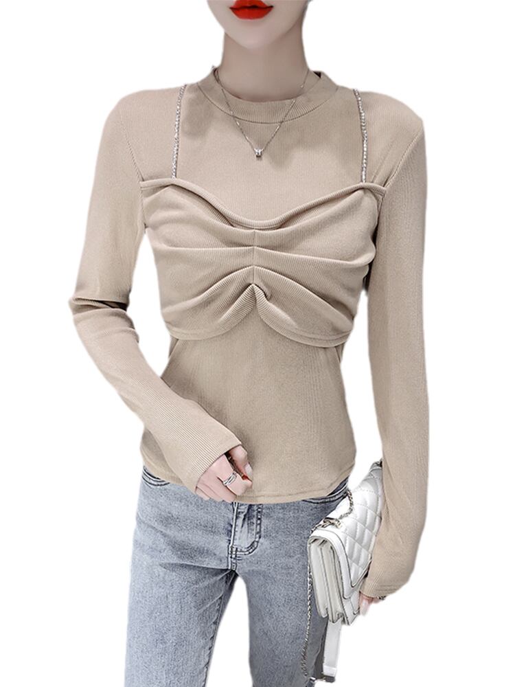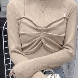 長袖Tシャツ トップス カットソー プルオーバー ブラック 黒 ホワイト 白 カーキ 袖あり 長袖 ラウンドネック スリム タイト 細身 フェイク2ピース 大人女子 大人 上品 おしゃれ かっこいい クール モード系 カジュアル レトロ レトロ風 こなれ感 ラフ 個性的 デザイン 主役級 存在感 ストリート 無地 秋 冬 10代 20代 レディース 女性用 女の子 学生 通学 デート お出かけ 女子会 イベント リゾート 旅行 着回し 普段使い トレンド S M L XL