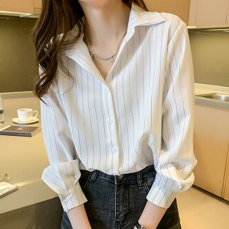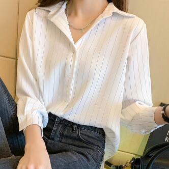 7分袖シャツ トップス シャツ ホワイト 白 ネイビー 紺 レギュラー丈 袖あり 7分袖 襟付き ストレート シングルブレスト ボタン 大人女子 大人 上品 おしゃれ かっこいい クール きれいめ シンプル レトロ レトロ風 こなれ感 ラフ ルーズ シルエット 主役級 存在感 柄 ストライプ 縞模様 ボーダー 春 スプリング 20代 30代 40代 レディース 女性用 ママ 通勤 学生 通学 着回し 普段使い 定番 S M L XL 2XL 大きいサイズ