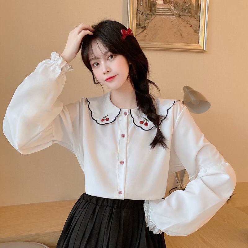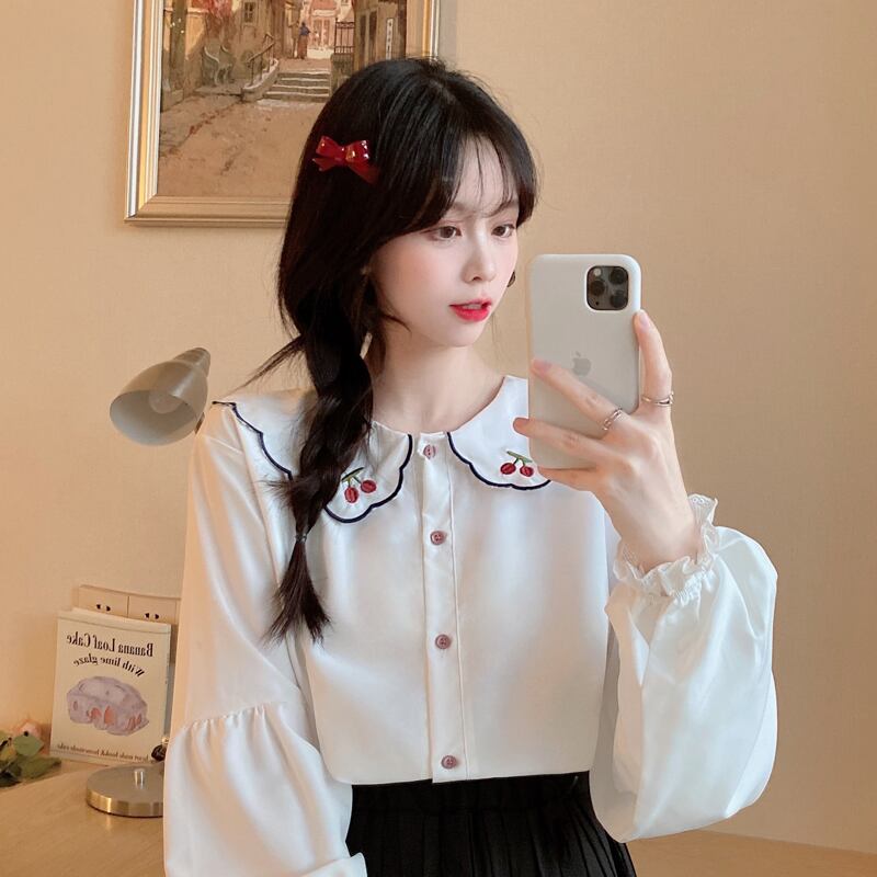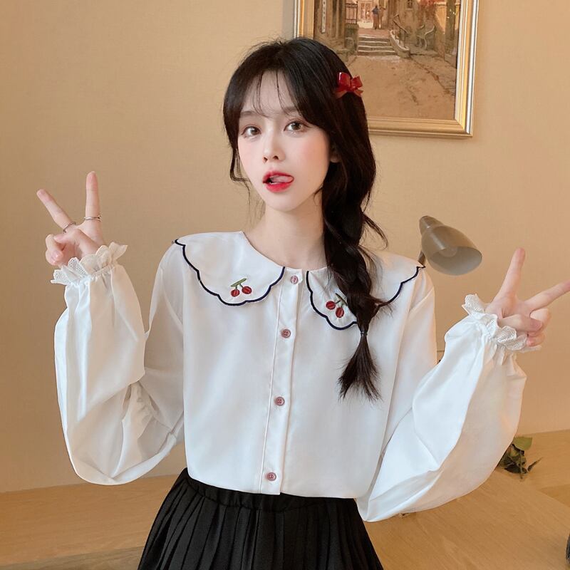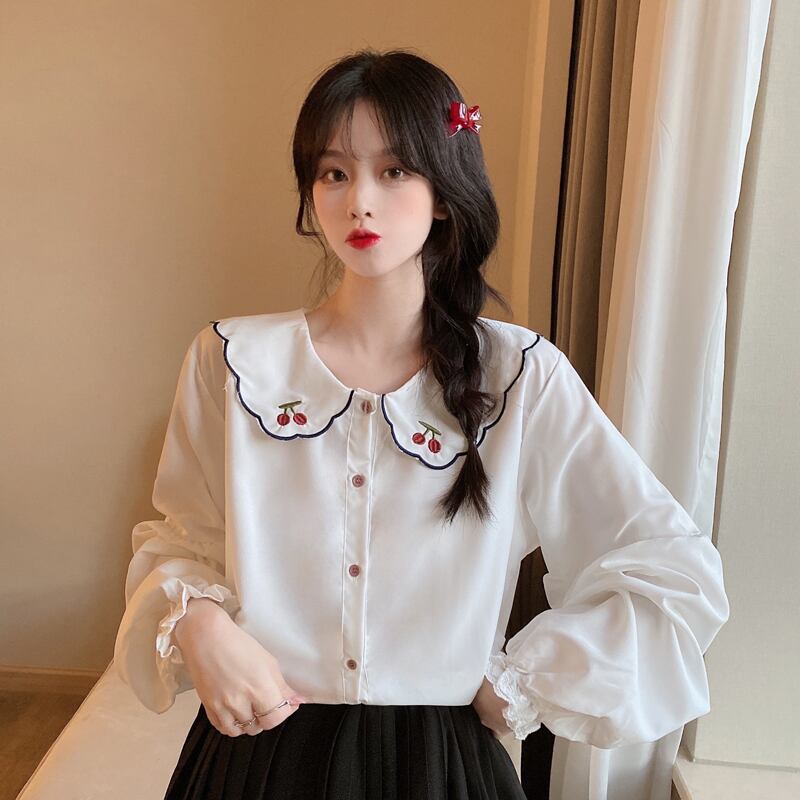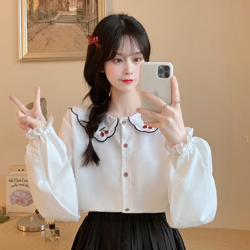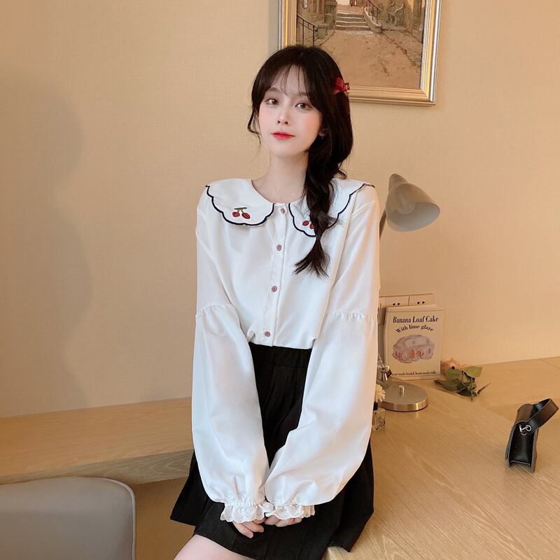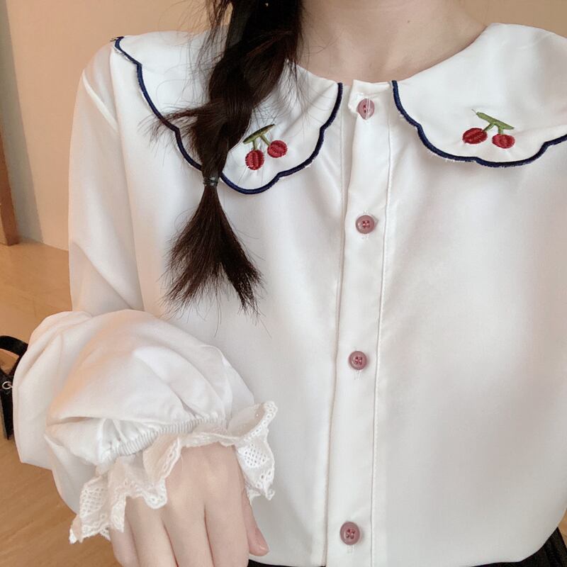 さくらんぼの刺繍がとってもかわいいブラウスです。