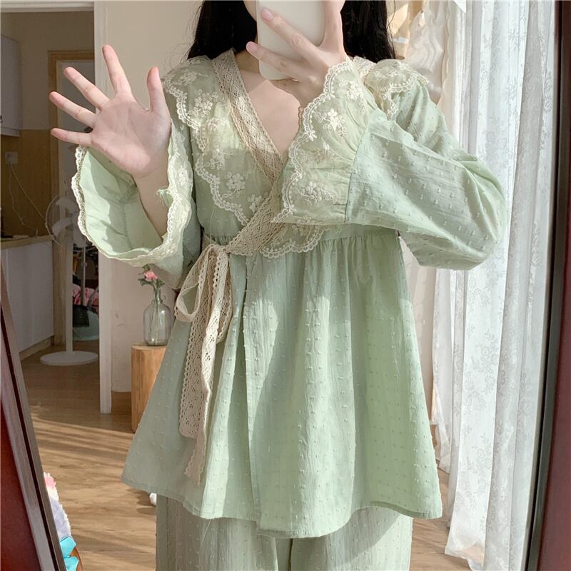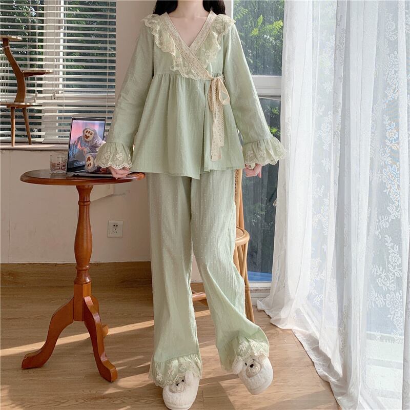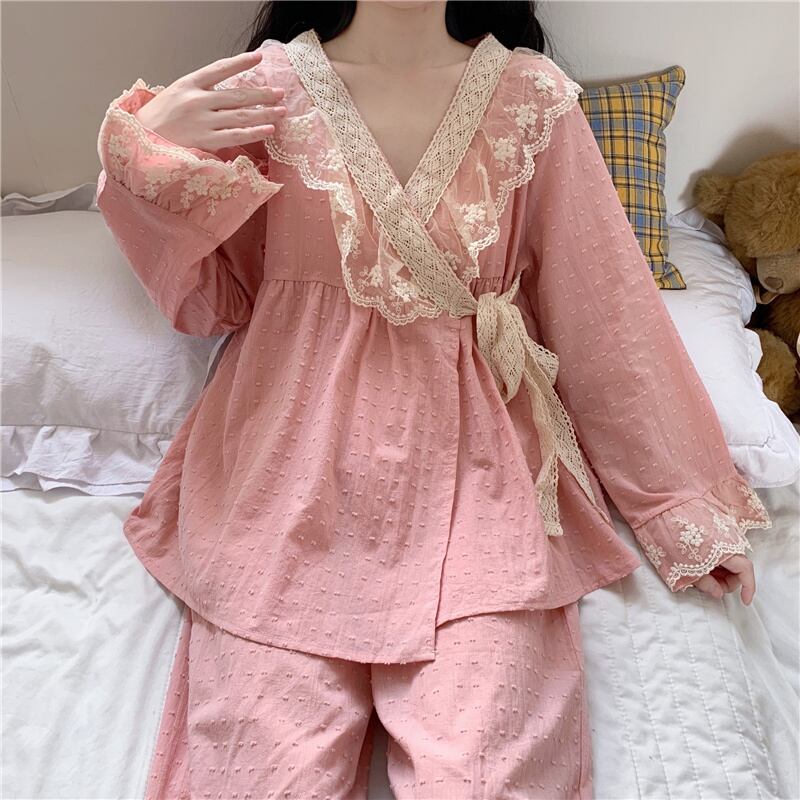 フリルパジャマ パジャマ 寝巻き ナイトウェア 袖あり 長袖 袖レース Vネック ワイド レース リボン ポリエステル 上下セット かわいい 大人可愛い おしゃれ お洒落 レトロ 大人女子 こなれ感 ラフ ラブリー キュート 個性的 主役級 存在感 春 秋 10代 20代 レディース 女性用 女の子 OL 学生 お泊まり 旅行 ホテル ファッション 楽ちん モテ プレゼント ギフト 新作 トレンド 流行 インスタ映え イメチェン 好感度 イメージアップ 外国 注目 話題 新入荷 今だけ 目玉 おすすめ