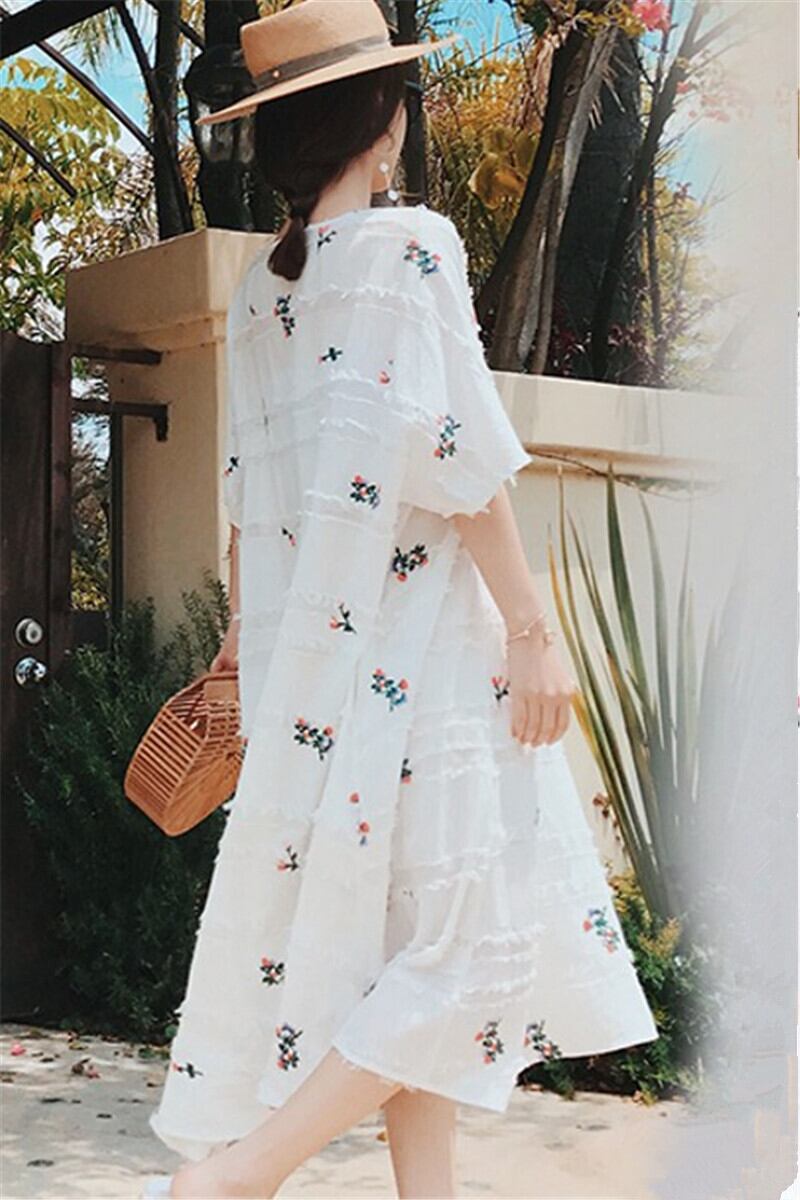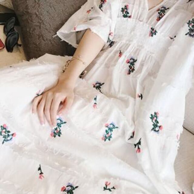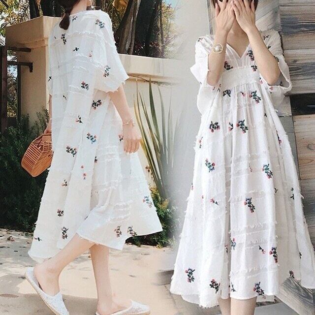 フローラルワンピース 花柄ワンピース フラワー 刺繍花柄 ホワイト 白 外国風トレンディ インポート 大人ワンピース 花柄 新しい デザイン センス ニッチプリント 洋風 ニュー ロング丈 ロングセクション ウエスト カジュアル オールインワン セミフレア かわいい 大人可愛い きれいめ シンプル 大人 上品 おしゃれ お洒落 ラフ キュート カジュアル 普段使い エレガント 存在感 柄 春 10代 20代 30代 デート お出かけ 女子会 休日 パーティー リゾート 旅行 海 韓国 オルチャン