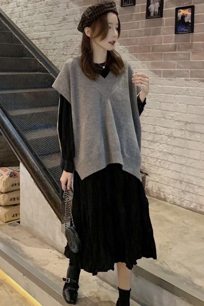 スタイルを選ばない汎用性抜群の一枚です。セーターやベスト、綿ワンピースが一つになってお得なセット販売となります。シンプルかつスリムなデザインが魅力的。ロング丈でストレートなシルエットはスマートな印象を与えます。ブラック、グレーの無地デザインはどんな服にも合わせやすく、大人可愛い、大人女子にぴったり。誕生日、謝恩会、二次会、クリスマス、バレンタインにもおすすめです。さらに春夏秋冬、様々なシーンで活躍しそうですね。