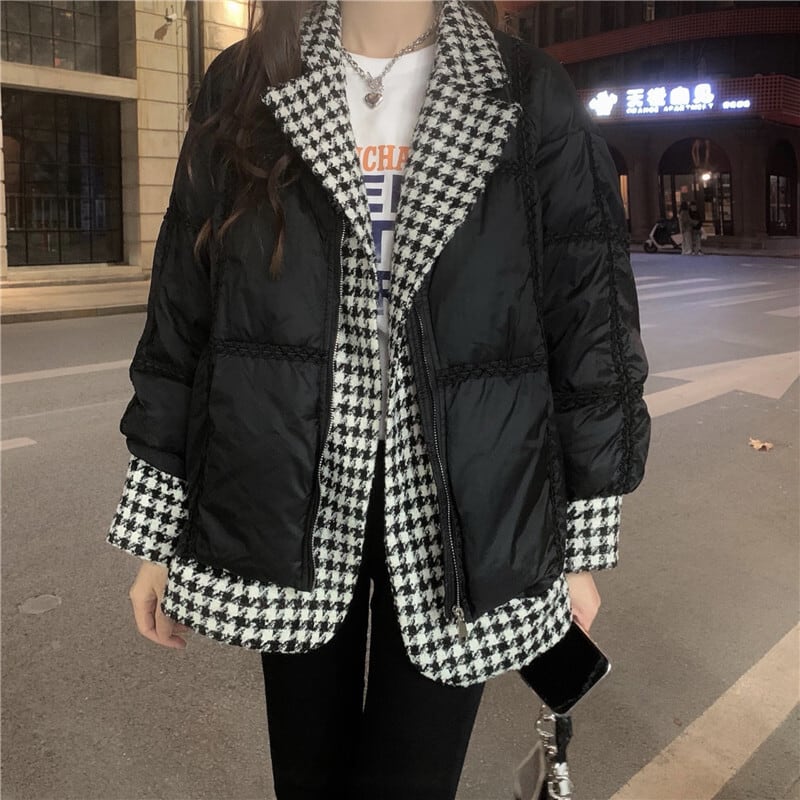 重ね着風 コート ブラック 黒 千鳥格子 アウター ジャケット 袖あり 長袖 襟付き チェック かわいい 大人可愛い きれいめ シンプル カジュアル 大人 上品 おしゃれ お洒落 大人女子 こなれ感 キュート ガーリー エレガント クール 主役級 存在感 秋 冬 2021 レディース 女性用 学生 通学 デート 休日 お出かけ 女子会 イベント 旅行 着回し 普段使い 定番 韓国系 オルチャン モテ トレンド 流行 防寒 あったかい 暖かい インスタ映え おすすめ インポート ワンサイズ フリーサイズ