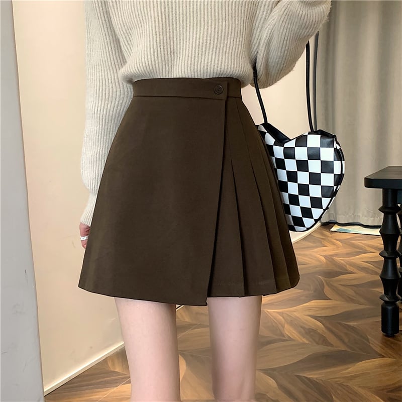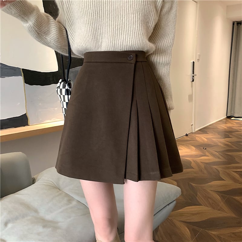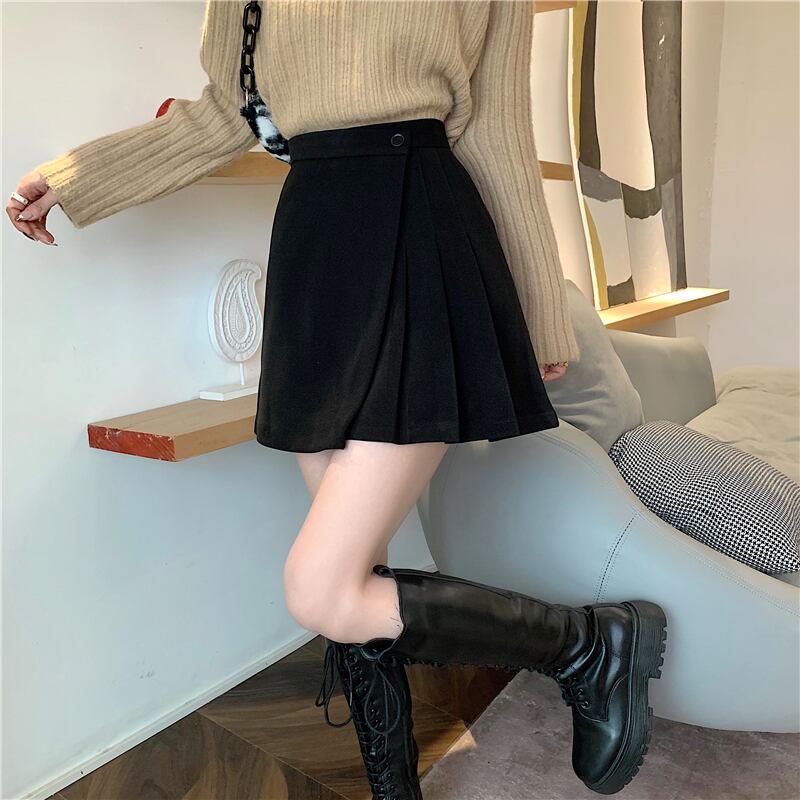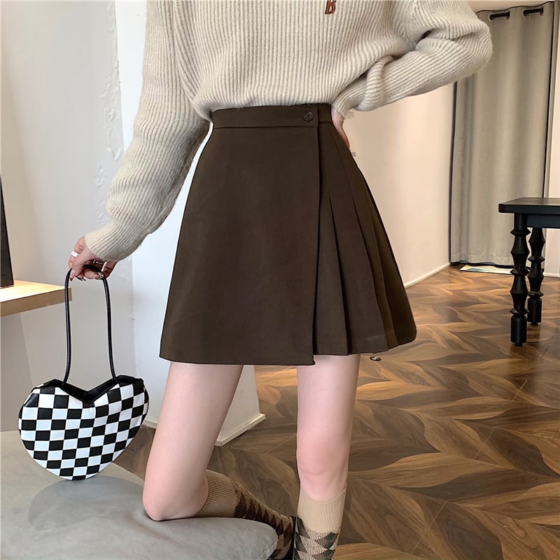 上品で可愛らしいAラインミニスカートが新登場! ハイウエストで脚長効果もあるので、きれいめスタイルにもカジュアルスタイルにもバランス良く着こなせます。プリーツが立体感を出し、可愛らしい雰囲気を演出します。無地のブラックとブラウンの2色展開で、どんなトップスにも合わせやすいのもポイントです。大人っぽい雰囲気にはブラック、温かみのあるコーデにはブラウンを選んでみてくださいね。秋冬のオシャレには欠かせないアイテムとして、毎日のコーデにぜひ取り入れてみてください。また、プレゼントとしても喜ばれること間違いなしです。S、M、Lの3サイズ展開です。注意点としては、濃い色は色移りの恐れがあるので、他の衣類とは分けて洗濯してください。