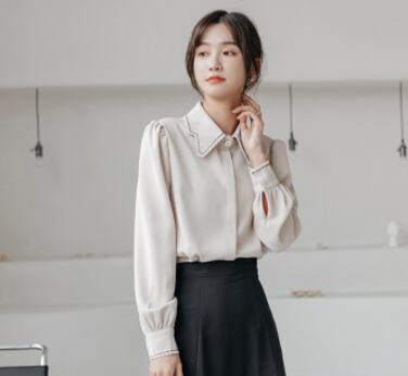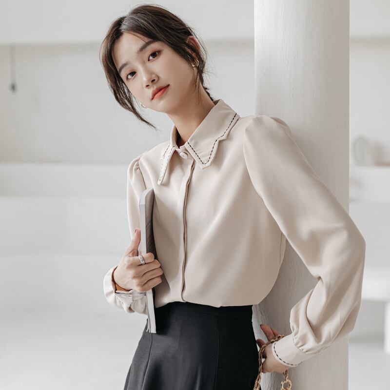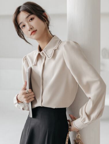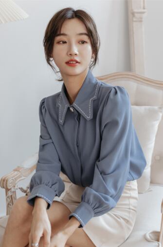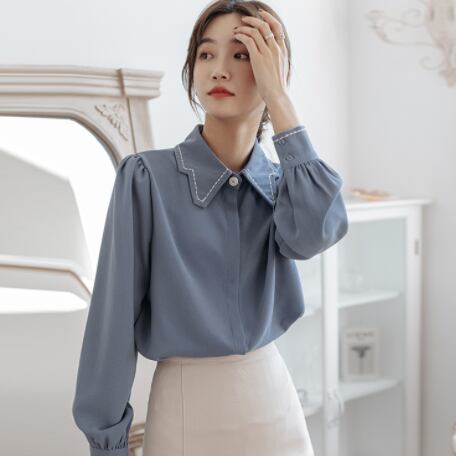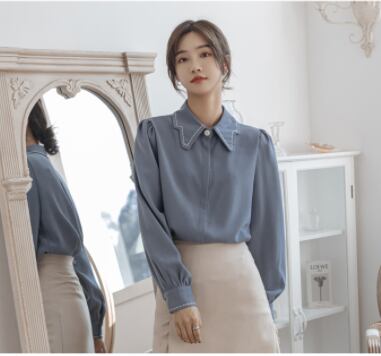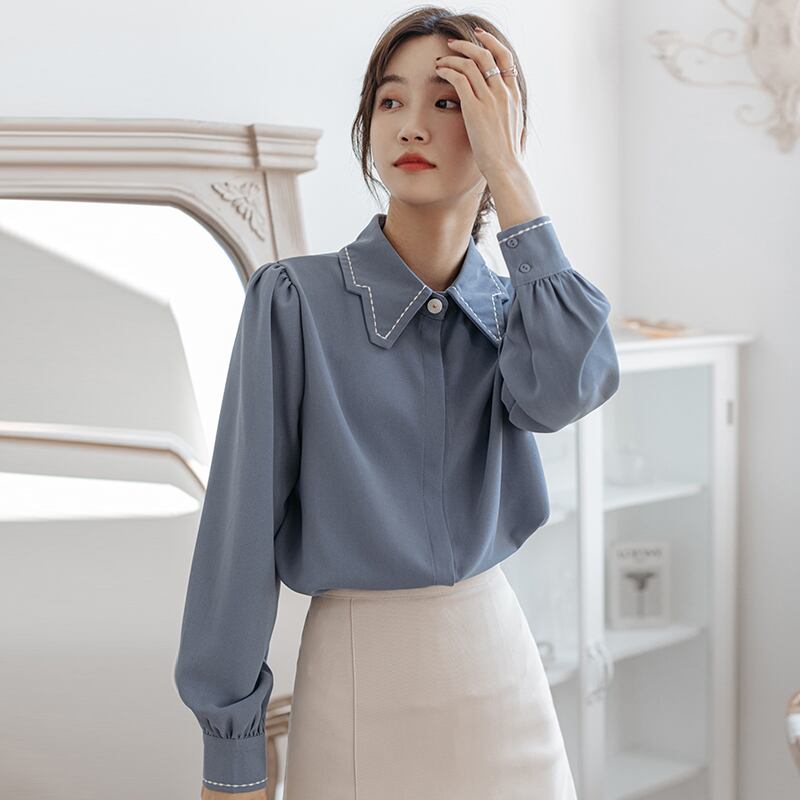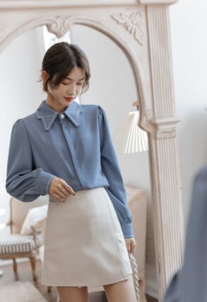 長袖シャツ トップス ブラウス シンプル アプリコット ブルー 青 レギュラー丈 袖あり 長袖 襟付き ストレート シングルブレスト ボタン 大人女子 大人 上品 おしゃれ きれいめ シンプル エレガント レトロ レトロ風 こなれ感 ラフ 個性的 デザイン 主役級 存在感 無地 春 スプリング 秋 オータム 10代 20代 30代 40代 レディース 女性用 オフィス ビジネス OL 通勤 着回し 普段使い ファッション コーデ 定番 S M L XL くすみカラー