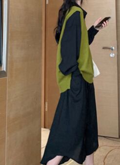 長袖シャツワンピースとニットベストのセットです。