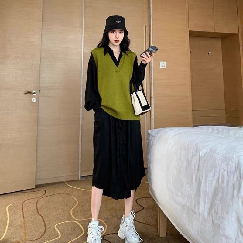 シャツワンピース+ベストセット ワンピース セットアップ ワンピース ベスト シャツワンピース ノースリーブ 長袖 ラウンドネック 襟付き フレア ニット 2点セット かわいい 大人可愛い きれいめ シンプル カジュアル 大人 上品 おしゃれ かっこいい レトロ 大人可愛い 大人女子 こなれ感 ラフ 無地 春 秋 冬 10代 20代 30代 40代 ママ 学生 通学 デート お出かけ 公園デビュー 女子会 休日 お散歩 リラックス 着回し 普段使い 重ね着 ファッション コーデ スタイル 楽ちん