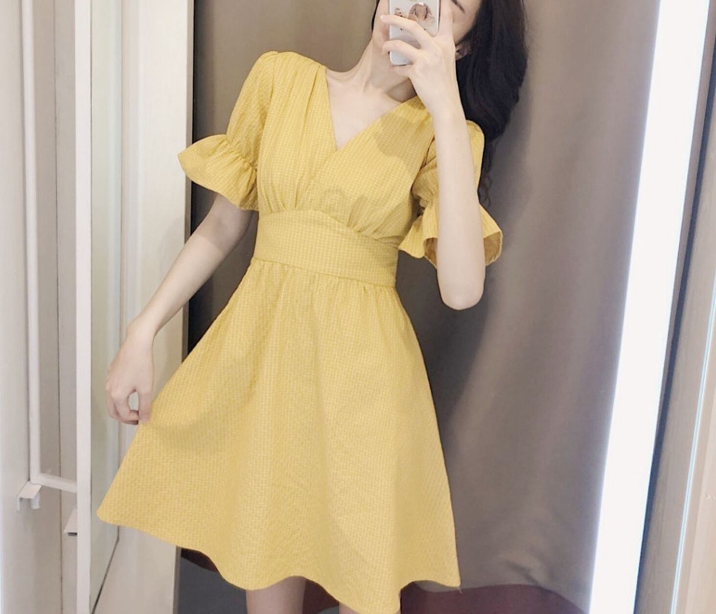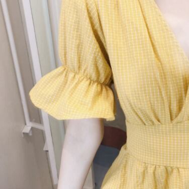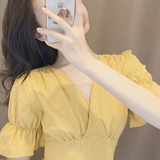 鮮やかなイエローが特徴的なミニワンピースです。