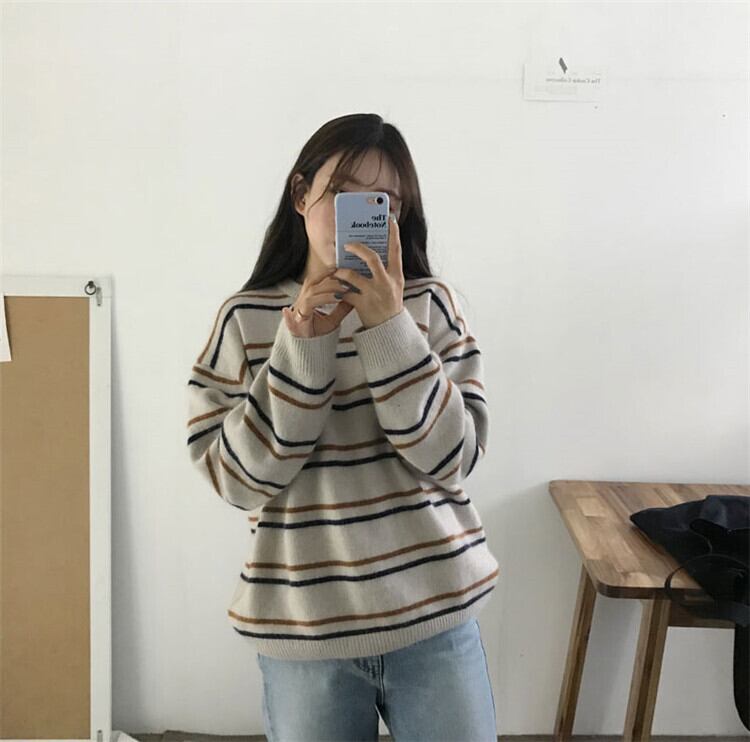 ゆったりボーダー柄セーター トップス ニット セーター 長袖 ラウンドネック かわいい 大人可愛い きれいめ シンプル カジュアル 大人 上品 おしゃれ ラフ メンズライク ボーイッシュ ルーズ 無地 柄 ボーダー 秋 冬 10代 20代 30代 40代 レディース ママ 学生 通学 デート お出かけ 公園デビュー 女子会 休日 お散歩 人気 着回し 普段使い 重ね着 ファッション コーデ スタイル 楽ちん 暖かい プレゼント 定番 個性的 お得 合わせやすい ゆるかわ S M L XL 大きめ ゆったり