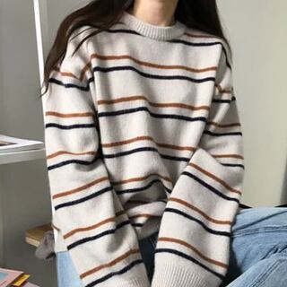 シンプルなゆったりサイズのボーダー柄セーターです。