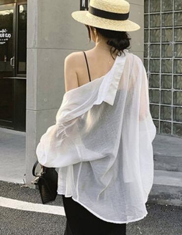 薄手長袖ブラウス トップス シャツ ブラウス 長袖 透け感 かわいい 大人可愛い きれいめ シンプル カジュアル 大人 上品 おしゃれ かっこいい 大人女子 こなれ感 ラフ 無地 春 夏 10代 20代 30代 40代 50代 60代 レディース ママ オフィス 通勤 学生 通学 デート お出かけ 公園デビュー 女子会 休日 リゾート 旅行 海 高原 紫外線 着回し 普段使い 重ね着 コーデ スタイル 楽ちん お得 合わせやすい 好感度 イメージアップ 清潔感 S M L XL2XL3XLホワイト