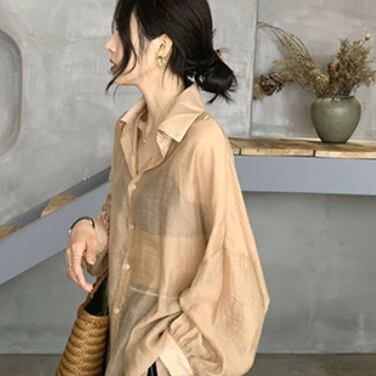 薄手で程よい透け感がかわいい、大人可愛い薄手長袖ブラウスのご紹介です。シンプルだけど上品さが漂うデザインで、きれいめなオフィススタイルはもちろん、カジュアルなデートやお出かけにもおすすめ。大人女子にこなれ感を演出するラフな着こなしにもぴったりです。しかも、これ一枚でコーデ完成しちゃうから、楽ちんにスタイルアップできちゃいます。