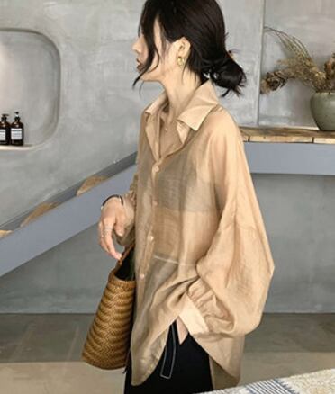 薄手の透け感のある長袖ブラウスです。
