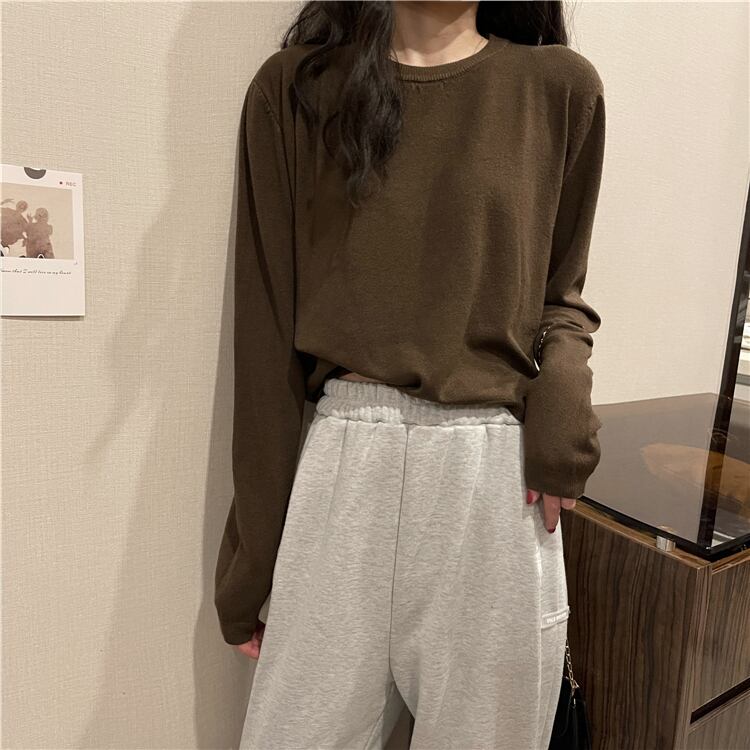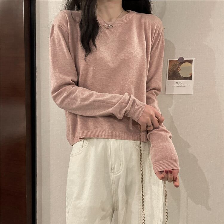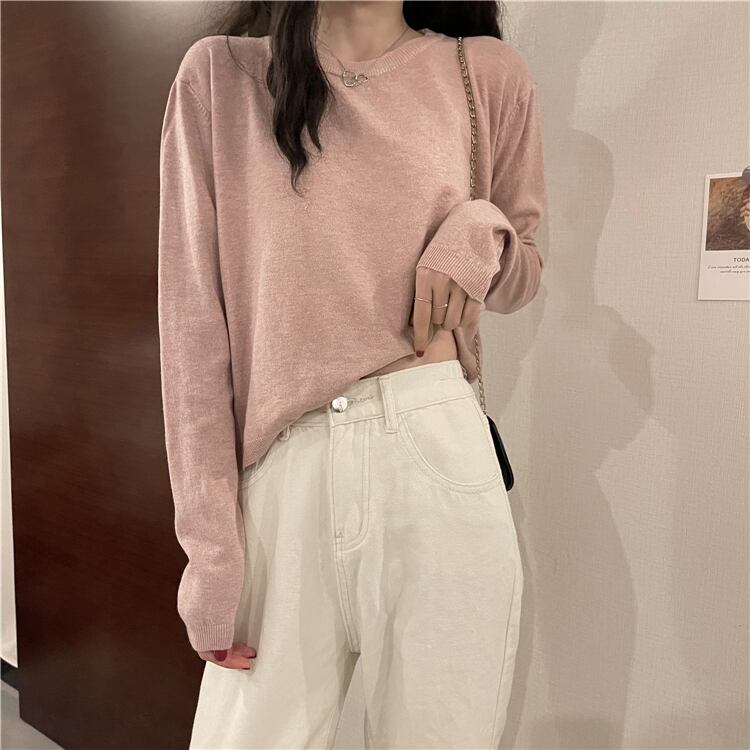 長袖セーター トップス セーター ショート 白 ホワイト 黒 ブラック 茶色 ブラウン 灰色 グレー カーキ ピンク ショート丈 長袖 ラウンドネック 襟なし ストレート ニット かわいい 大人可愛い きれいめ シンプル カジュアル 大人 おしゃれ 大人女子 こなれ感 ラフ ルーズ 抜け感 無地 春 2022 10代 20代 30代 レディース 通勤 通学 デート お出かけ 女子会 休日 旅行 ガーデン 着回し 普段使い 重ね着 お揃い ファッション コーデ 楽ちん フリーサイズ 色展開 大人カラー