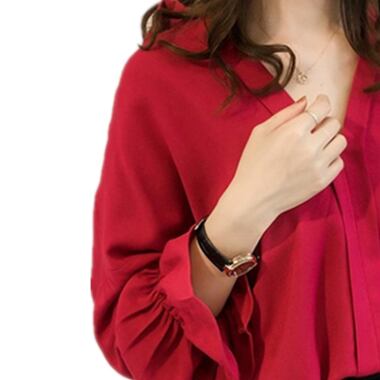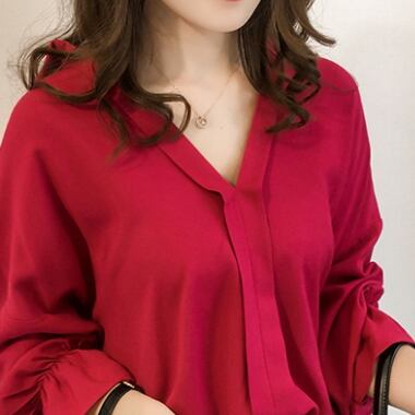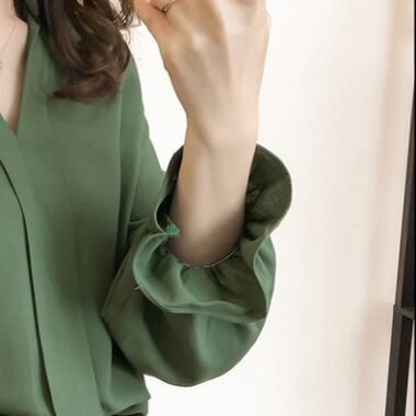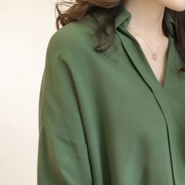 メインのアイテムになれる、大人可愛いスキッパーシャツの登場です!Vネックと流れるようなとろみ感が女性らしい印象を醸し出しています。無地のため、ジャケットやパンツとのコーディネートもしやすく、オフィスやデート、お出かけなど、幅広いシーンで活躍してくれます。