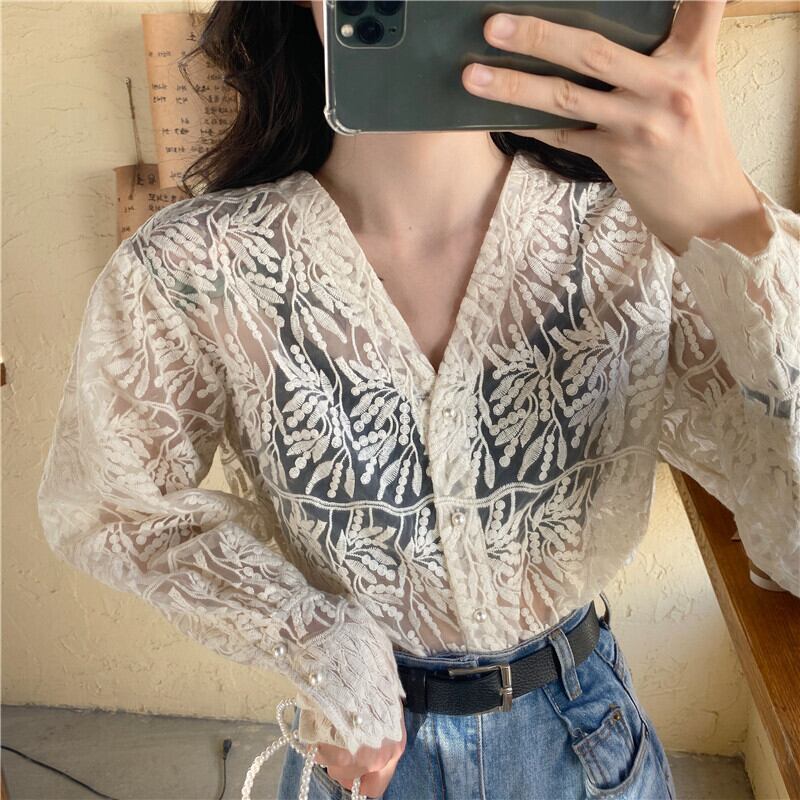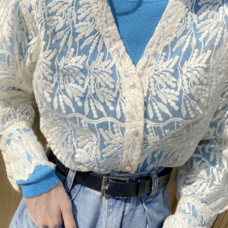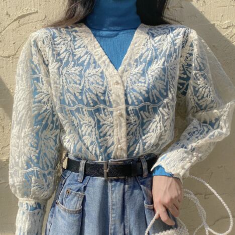 個性的なシースルーのレースカーディガンです。