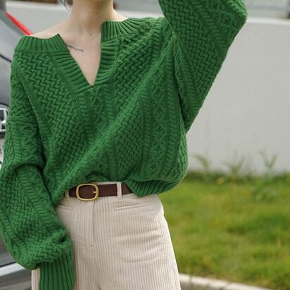 Vネックセーターは、スッキリとしたシルエットが魅力の、モード系上品なトップスです。グリーンとホワイトの二色展開で、お好みに合わせてお選びいただけます。スマートなのにかわいらしさもある、大人可愛いデザインは、おしゃれな大人女子にも愛用されています。スリムな細身シルエットは、体型カバーにも効果的で、コーディネートをさらに上品に見せてくれます。春秋冬問わず、幅広いシーンで活躍する、使い勝手の良い一枚です。