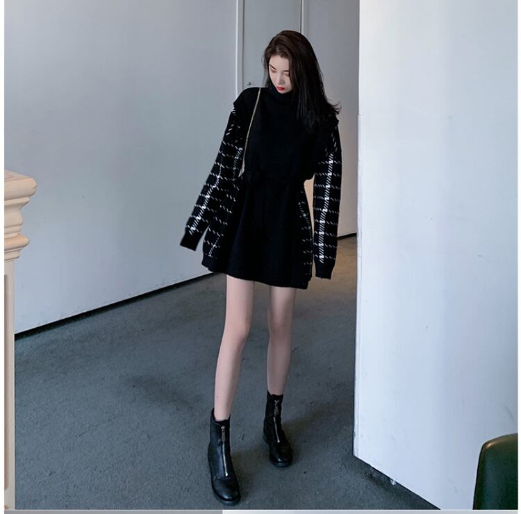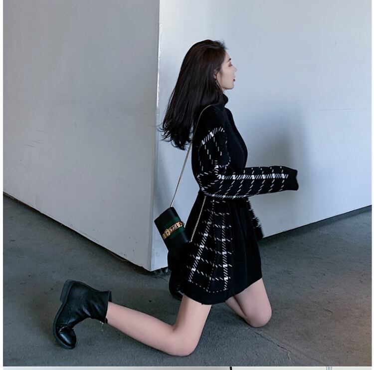 当店の自信作、ニットワンピースとベルトのセット販売です。ブラックの無地ニット生地で、シンプルで上品なデザインに仕上げました。細身でストレートなシルエットは、スマートな印象を与え、大人女子にぴったり。ミニ丈なので、足首を見せることでより女性らしい着こなしも楽しめます。春秋冬の3シーズンに合わせられ、様々なシーンで活躍してくれます。