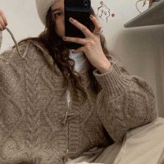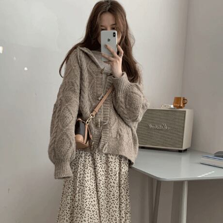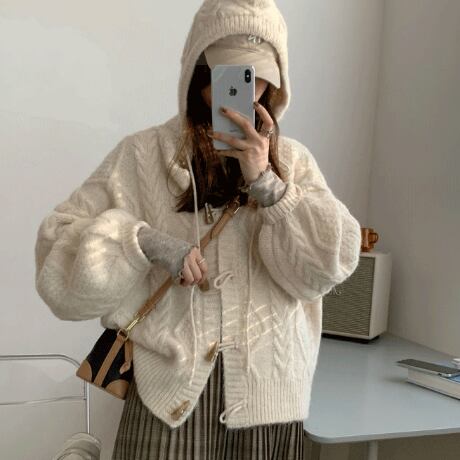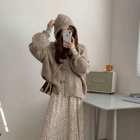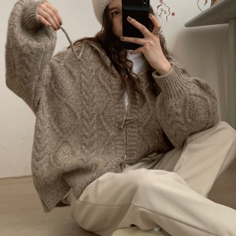 今季トレンドのセーターカーディガンがおしゃれコーデを叶えます。フード付きで、リラックス感のあるコーディネートが出来る上、冬場も暖かいのも魅力的。ブラウンとホワイトの2色展開で、どんなスタイルにもマッチします。