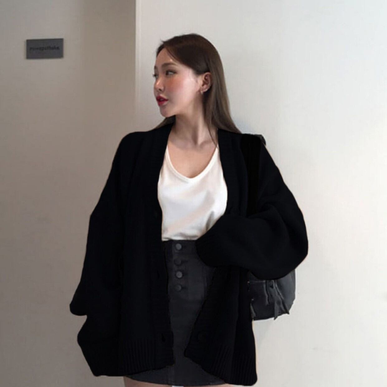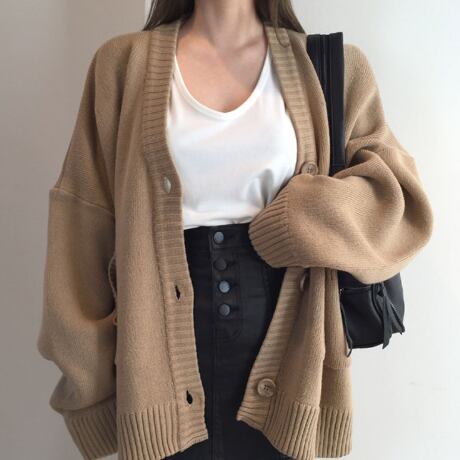商品名にはある程度の説明が含まれていますが、このセーターカーディガンの特徴をもう少し掘り下げて紹介します。この商品は、スリムで細身のシルエットが特徴的な、シンプルで上品なデザインのセーターカーディガンです。ブラック・ブラウン・グレーという、使いやすい無地のカラーバリエーションも魅力のひとつです。