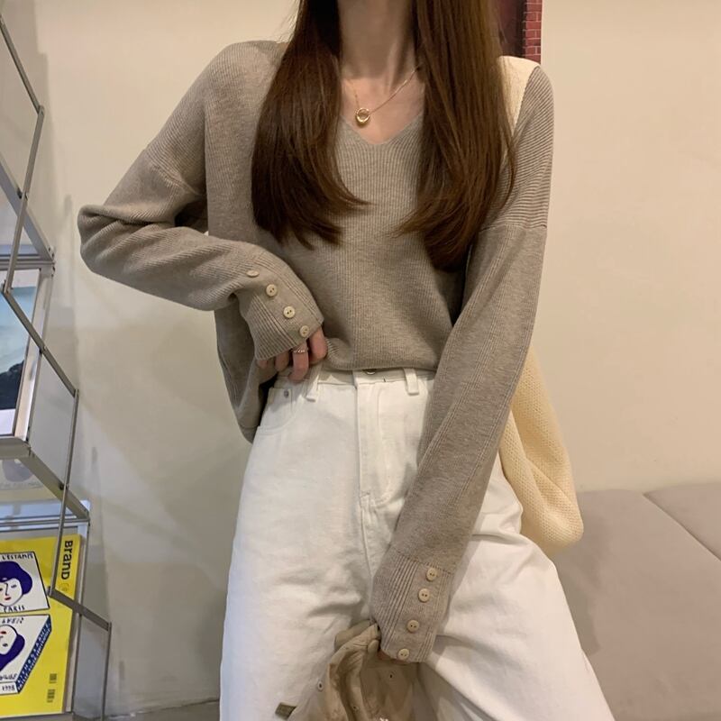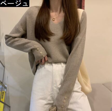 Vネックニット トップス ニットソー セーター 長袖 萌袖 Vネック かわいい 大人可愛い きれいめ シンプル 上品 おしゃれ お洒落 レトロ 大人可愛い 大人女子 キュート ガーリー ルーズ セクシー エレガント 主役級 無地 春 秋 冬 10代 20代 30代 40代 レディース 女性用 ママ 女の子 オフィス OL 通勤 学生 デート お出かけ 公園デビュー 女子会 お泊まり 休日 着回し 普段使い 韓国 韓国系 ファッション コーデ スタイル 暖かい モテ 新作 定番 送料無料 インポート 海外
