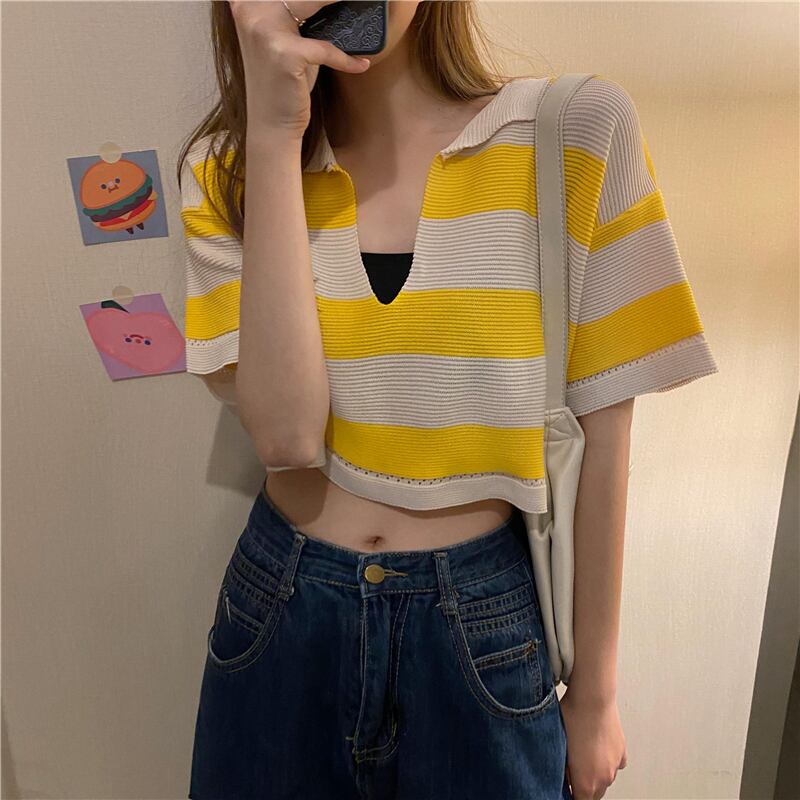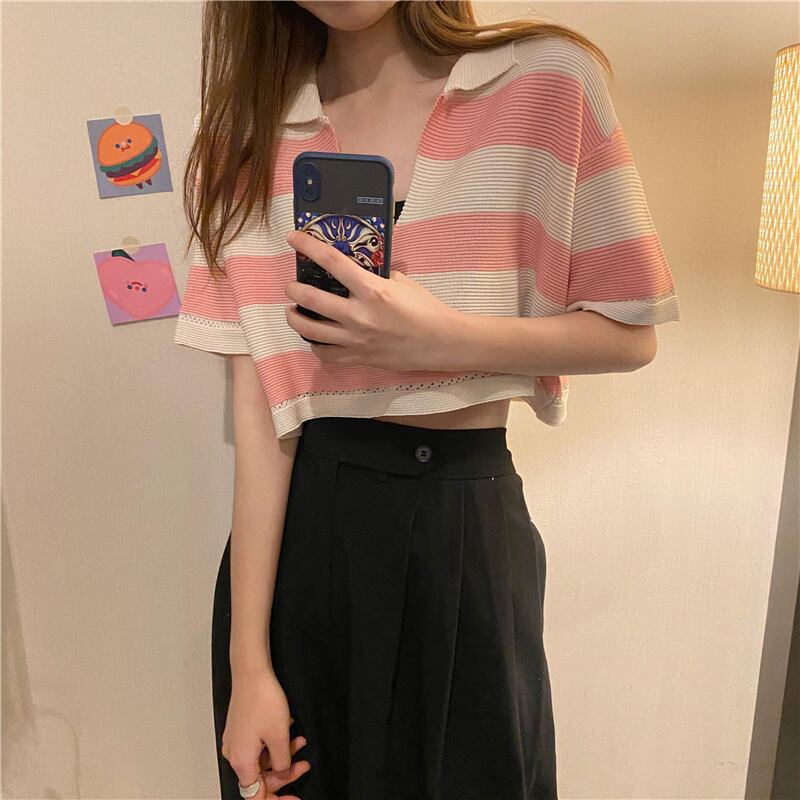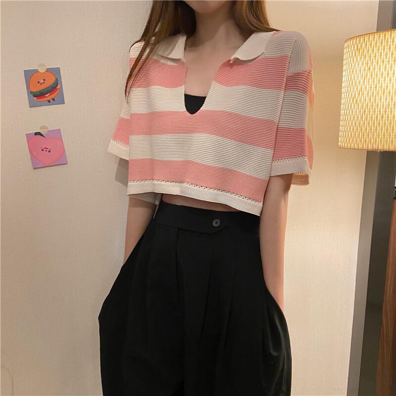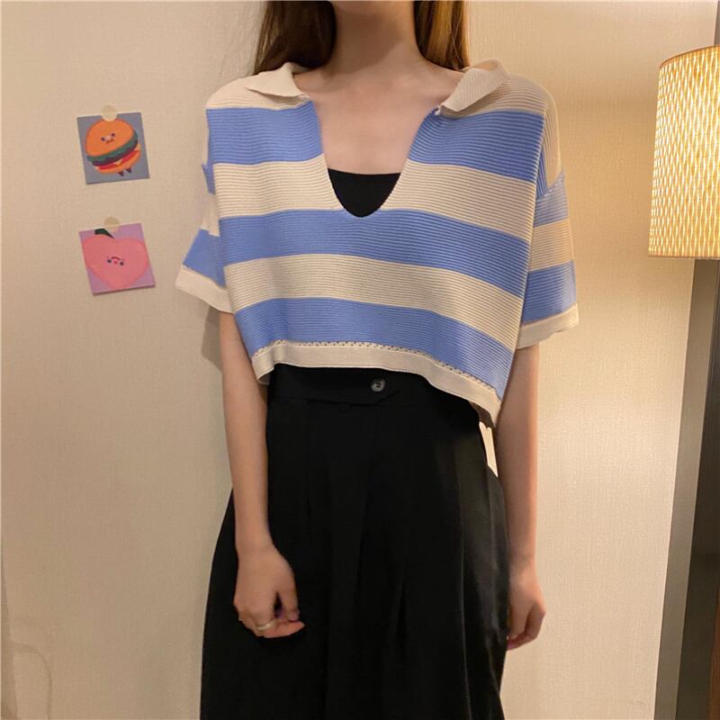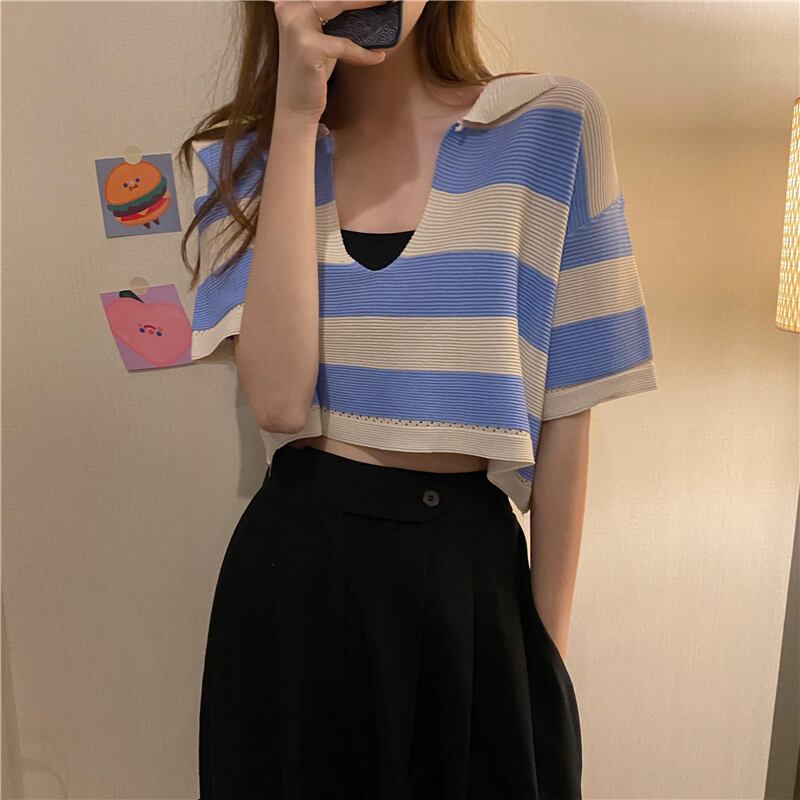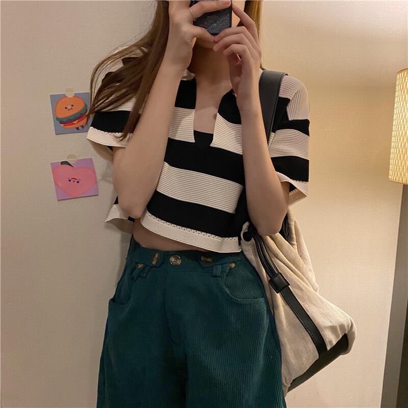トップス シャツ カットソー ミニ ミニ丈 ショート ショート丈 半袖 Vネック かわいい 大人可愛い カジュアル おしゃれ お洒落 かっこいい レトロ 大人可愛い 大人女子 こなれ感 ラフ メンズライク ボーイッシュ キュート ガーリー ルーズ 個性的 クール セクシー 主役級 存在感 ボーダー 春 夏 10代 20代 レディース 女性用 学生 デート お出かけ 女子会 お泊まり 休日 運動 着回し 普段使い 重ね着 韓国 韓国系 ファッション コーデ スタイル モテ 新作 定番 送料無料 トレンド