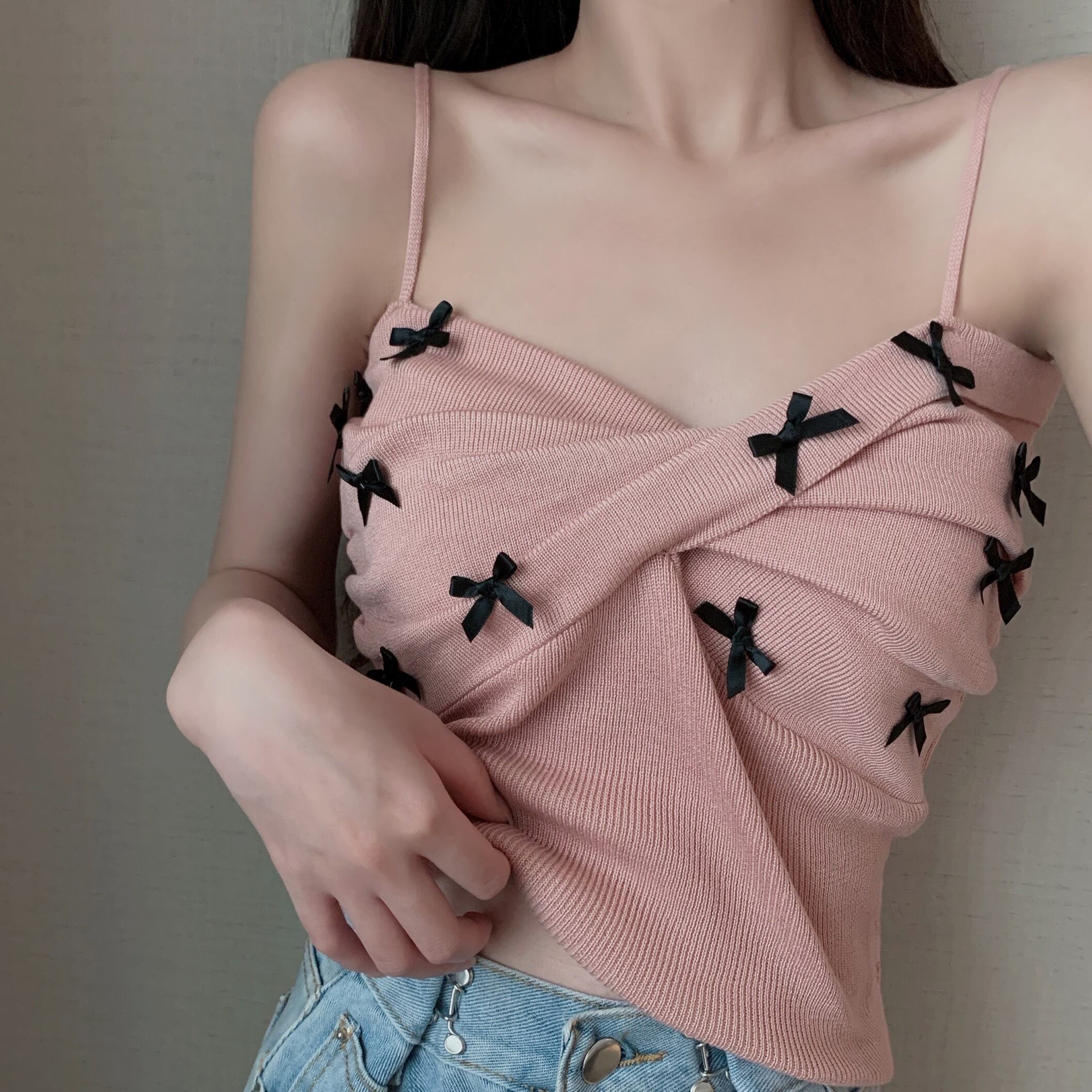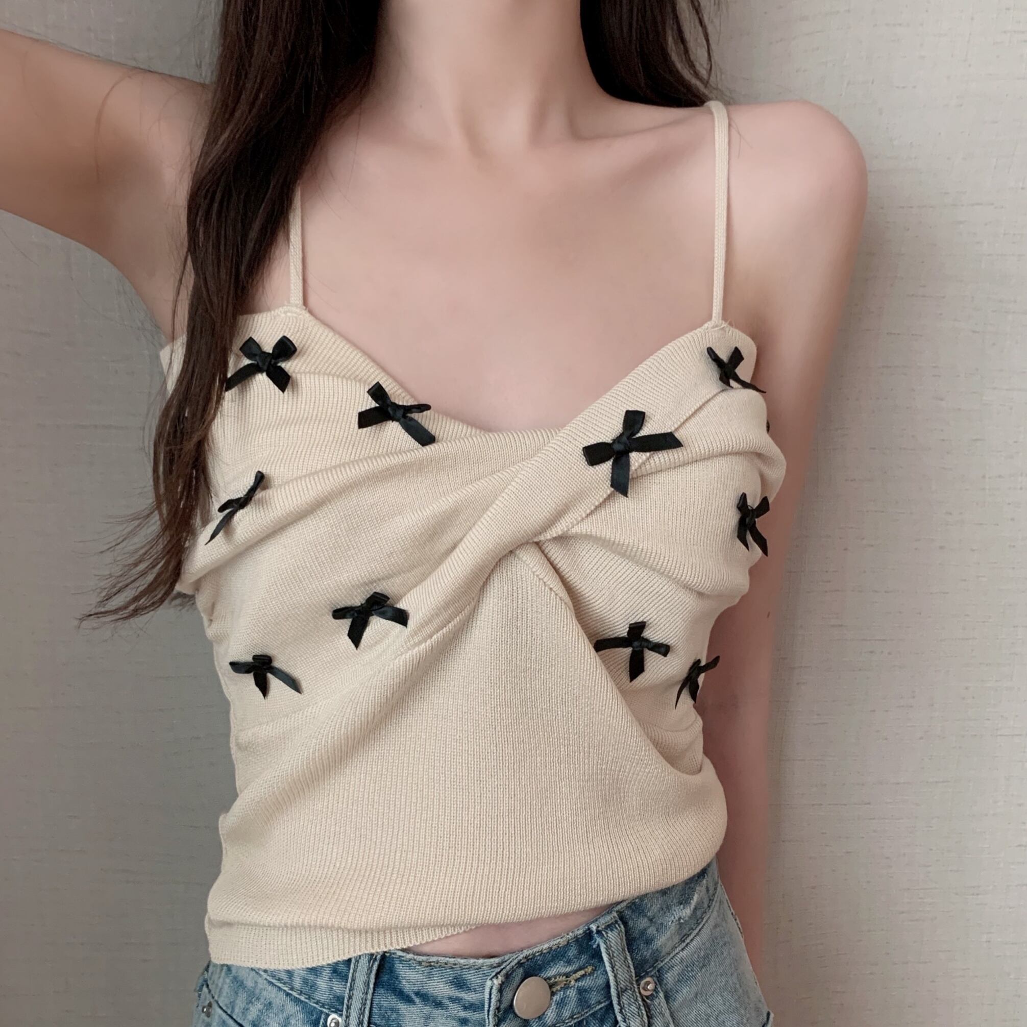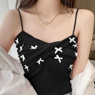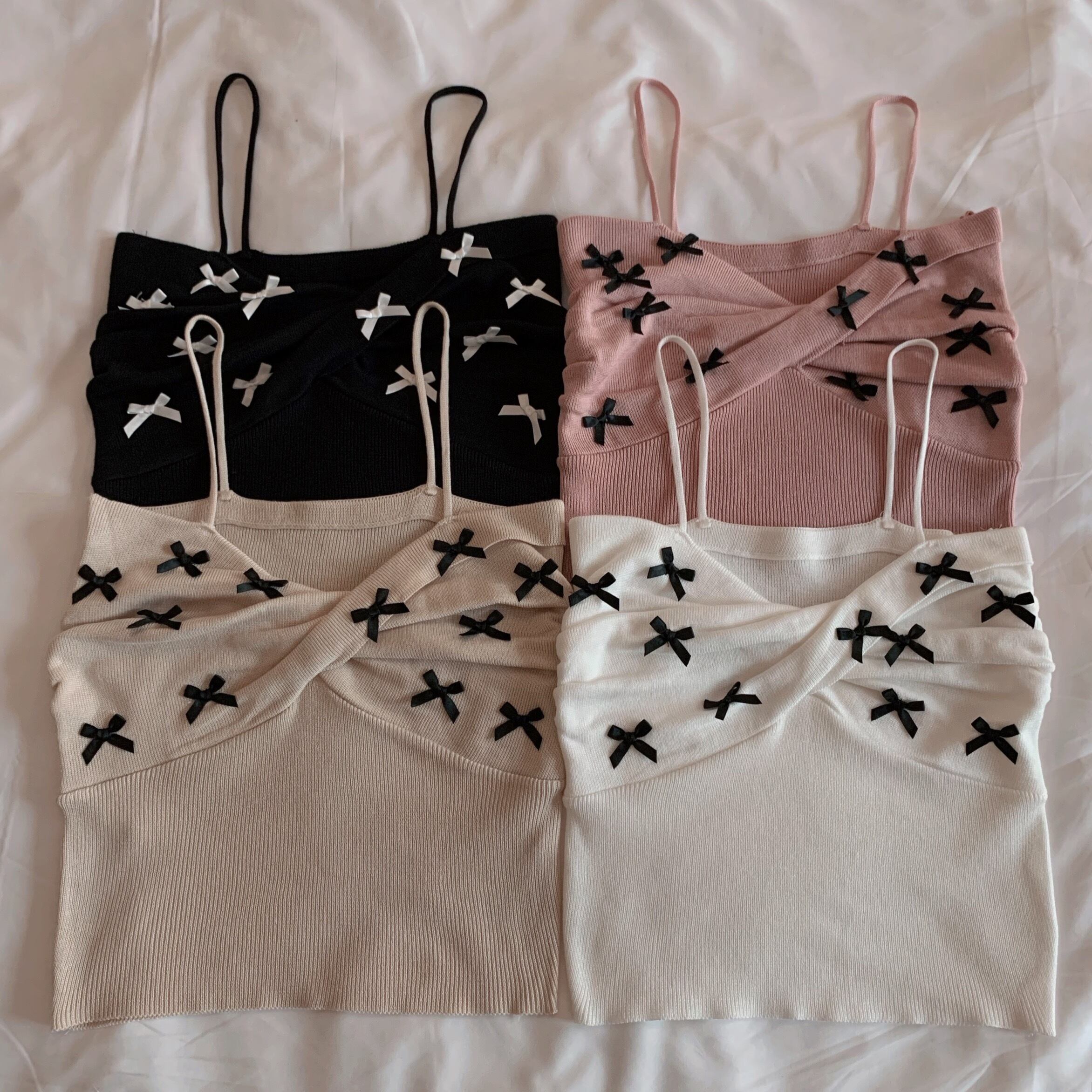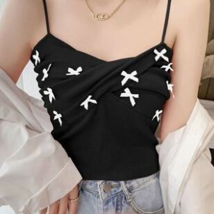 キャミソール トップス ショート ショート丈 袖なし リボン ニット サマーニット かわいい 大人可愛い おしゃれ お洒落 レトロ 大人可愛い 大人女子 ラブリー キュート ガーリー 主役級 夏 10代 20代 30代 レディース 女性用 学生 デート お出かけ 女子会 お泊まり 休日 海 プール 着回し 普段使い 韓国 韓国系 オルチャン ファッション コーデ スタイル モテ 送料無料 トレンド 流行 インスタ映えインポート 海外 人気 女子力 レイヤード コスパ 値段重視 ラフ こなれ感