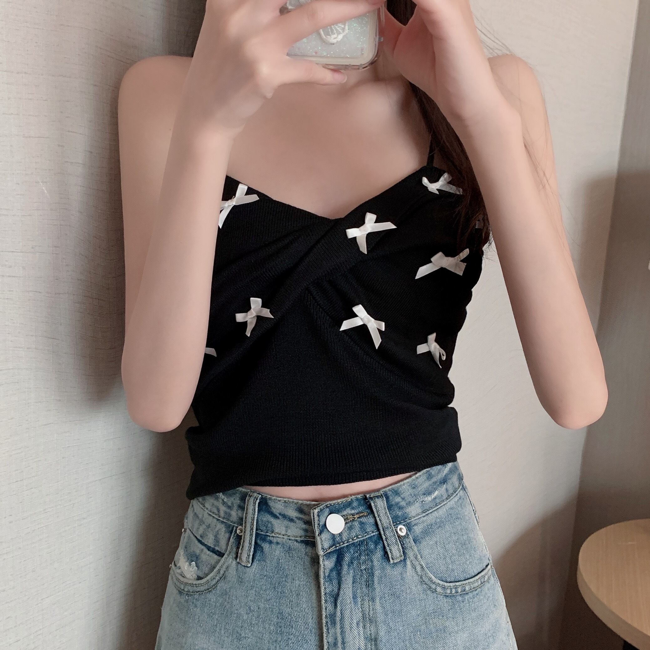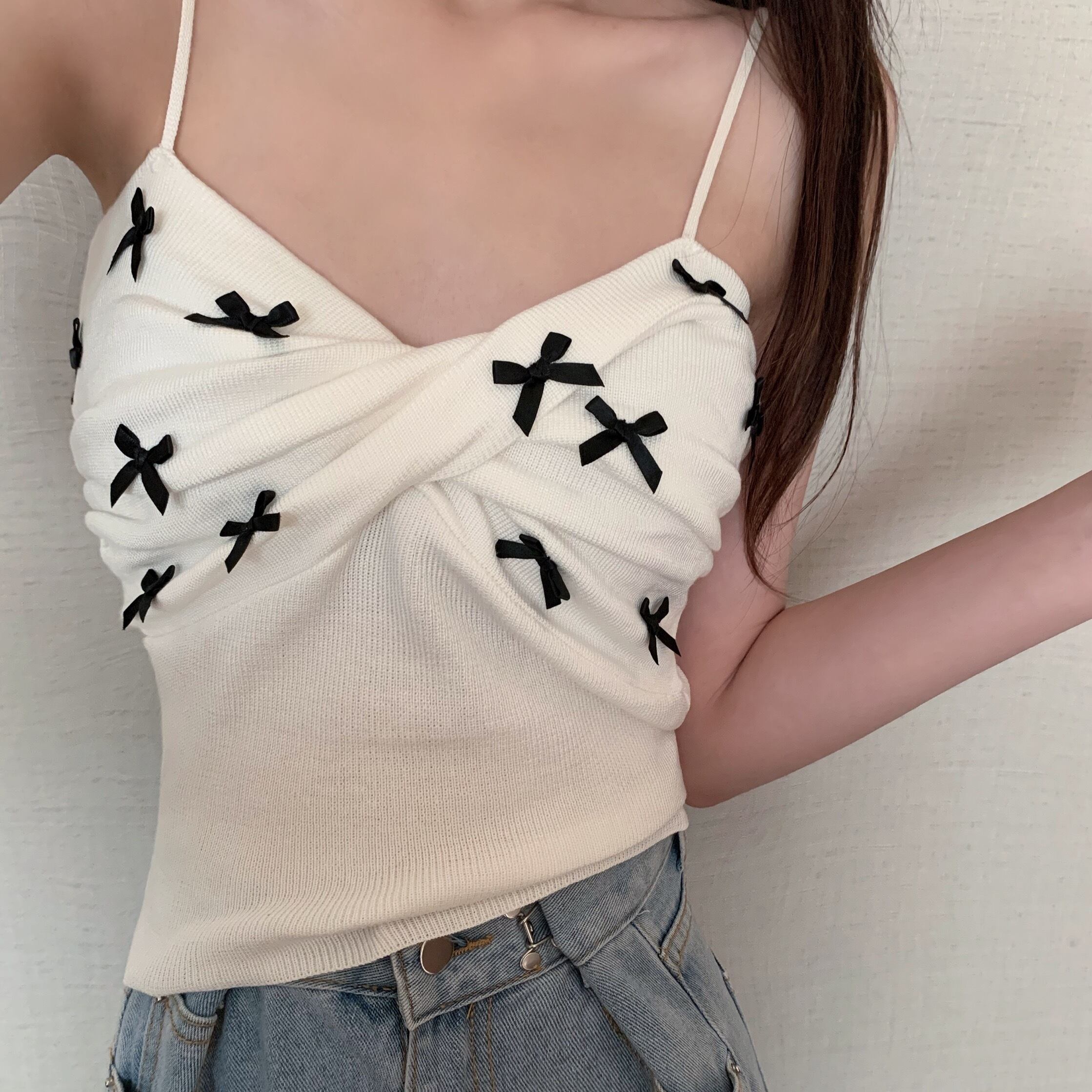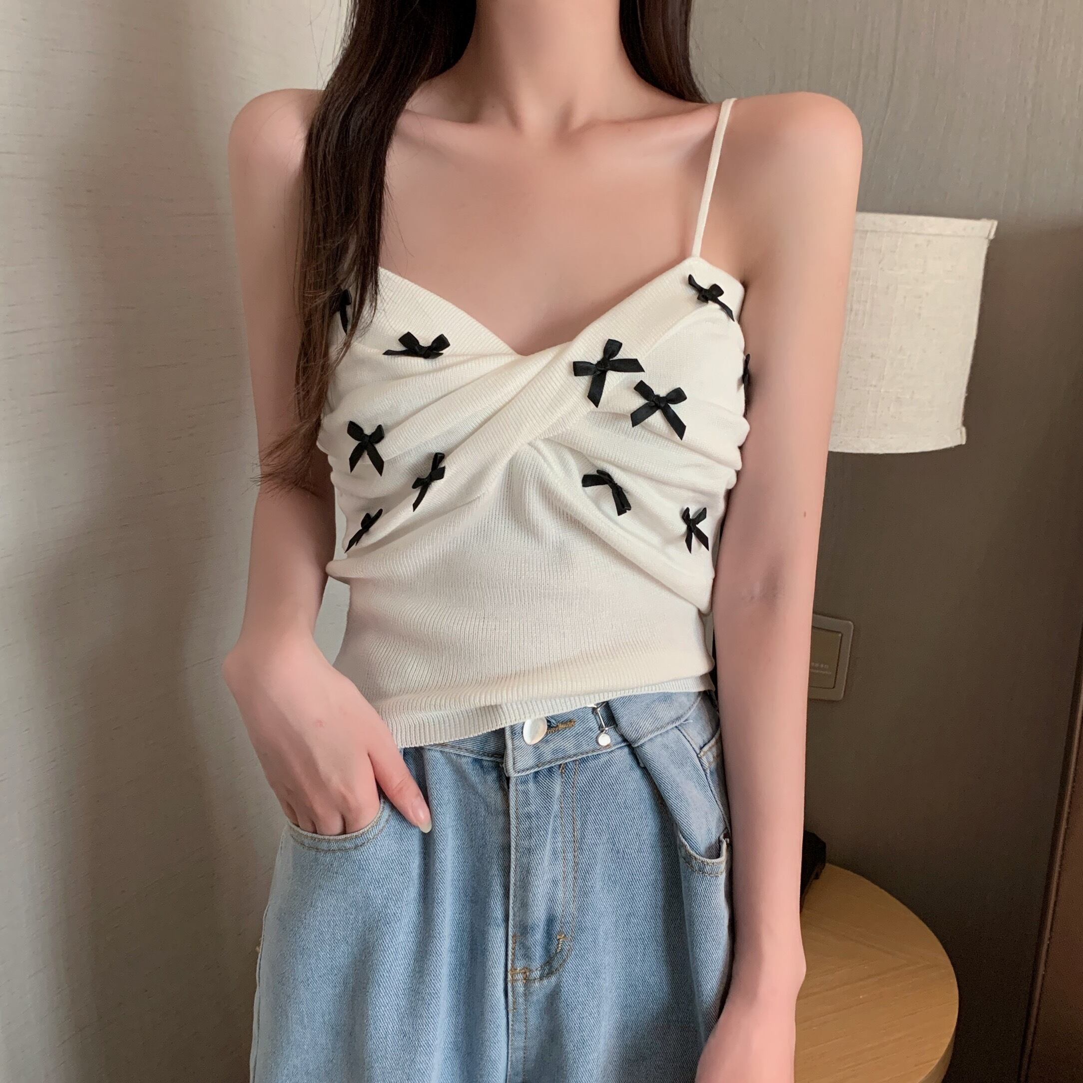 キャミソール トップス ショート ショート丈 袖なし リボン ニット サマーニット かわいい 大人可愛い おしゃれ お洒落 レトロ 大人可愛い 大人女子 ラブリー キュート ガーリー 主役級 夏 10代 20代 30代 レディース 女性用 学生 デート お出かけ 女子会 お泊まり 休日 海 プール 着回し 普段使い 韓国 韓国系 オルチャン ファッション コーデ スタイル モテ 送料無料 トレンド 流行 インスタ映えインポート 海外 人気 女子力 レイヤード コスパ 値段重視 ラフ こなれ感