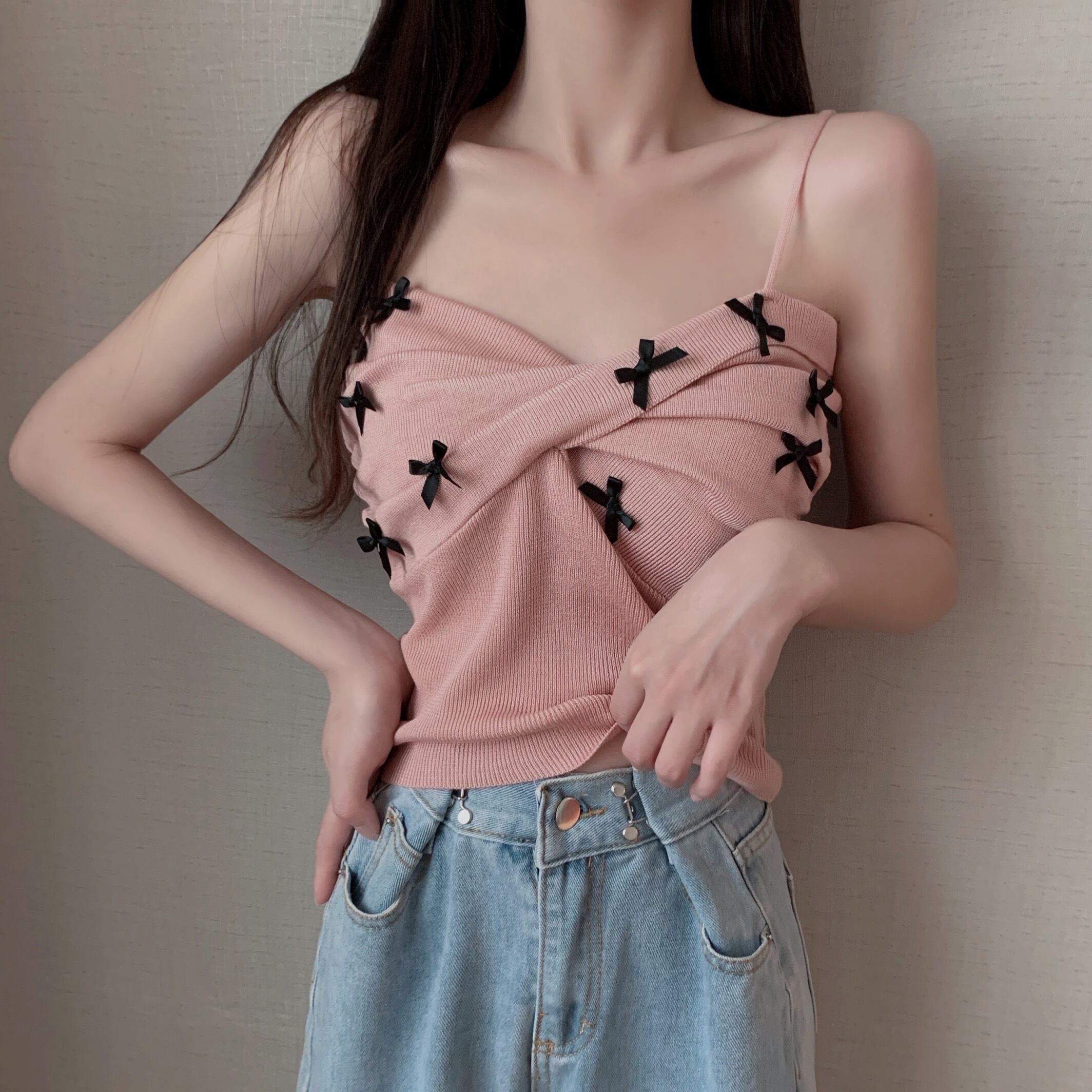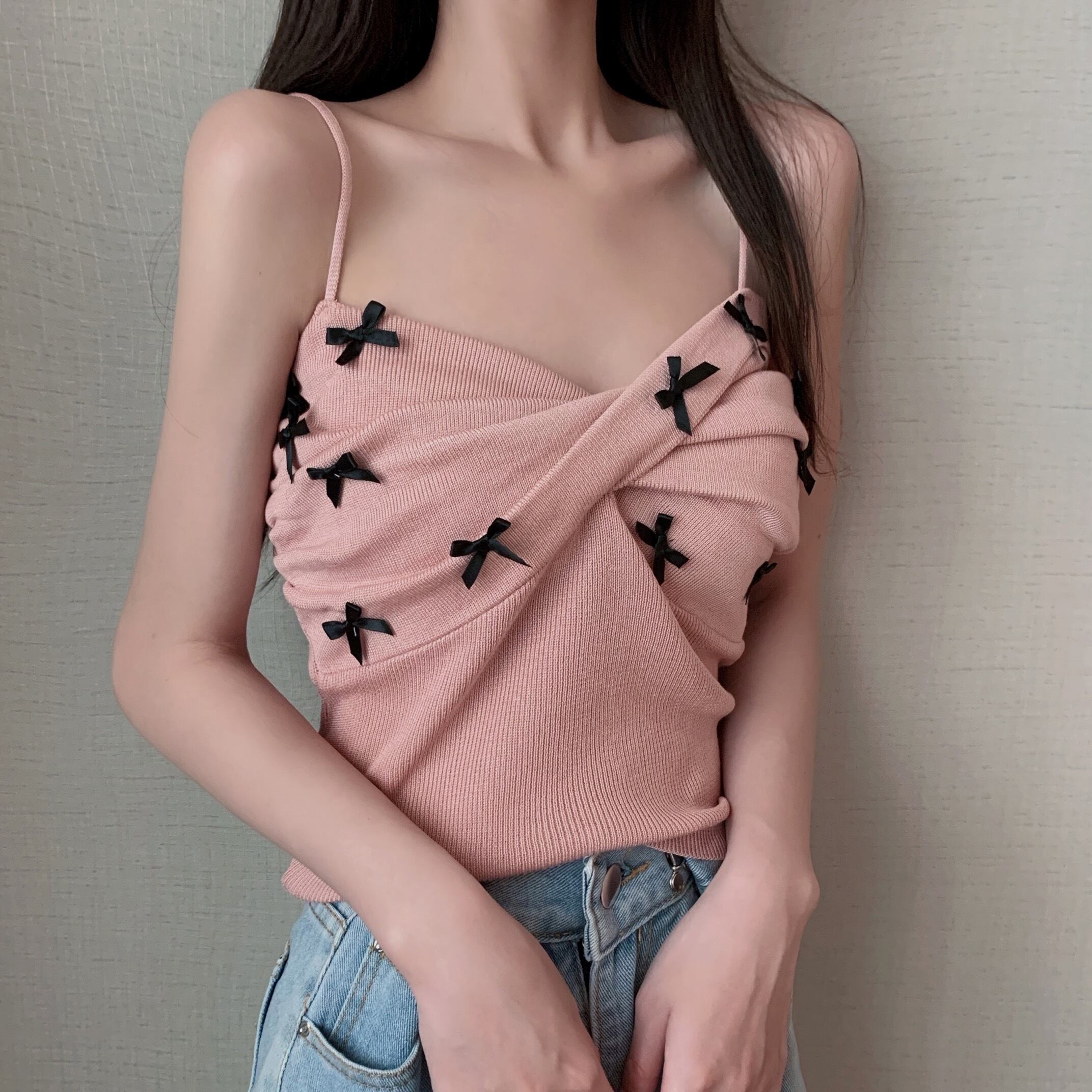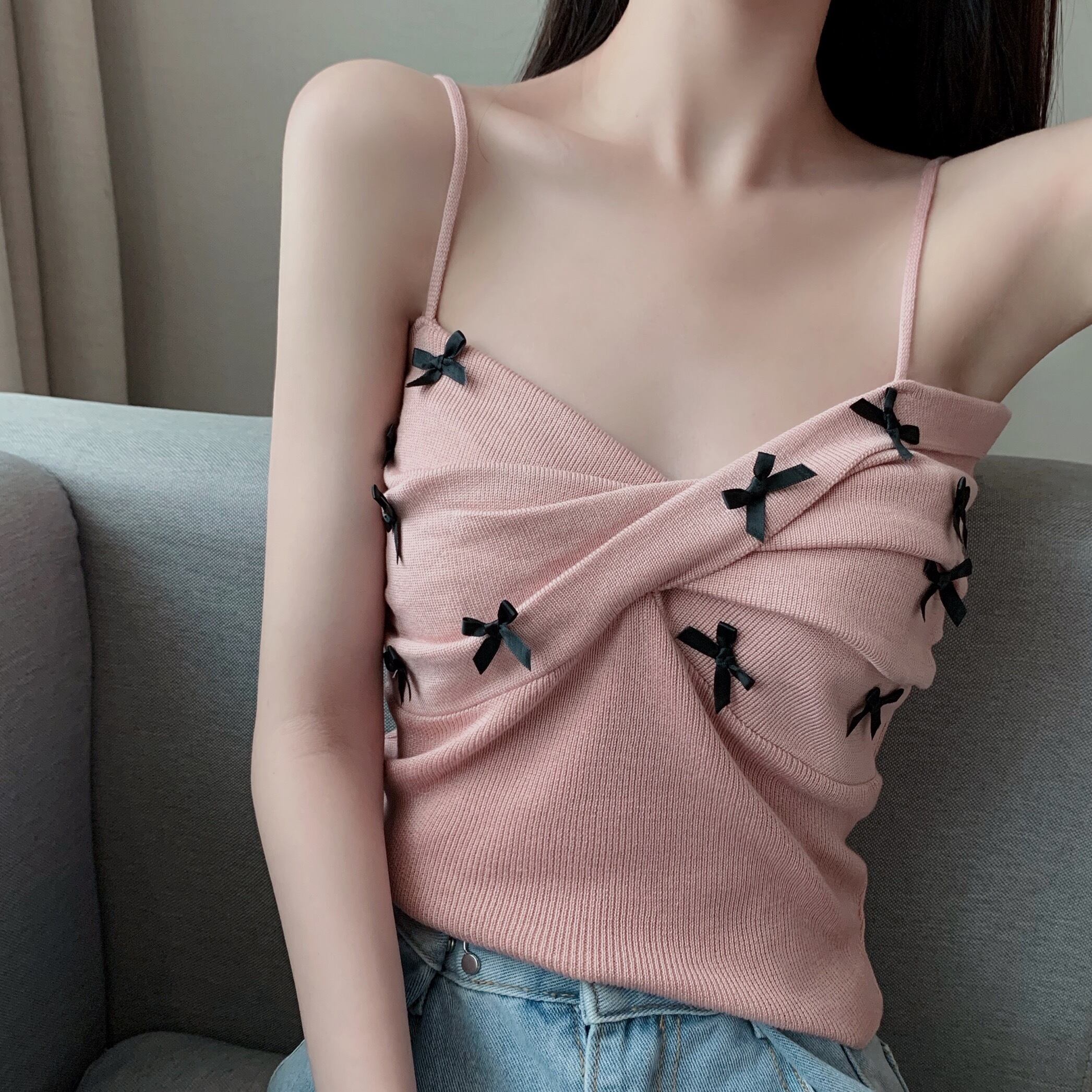 リボンが可愛いニットキャミソールトップスです。