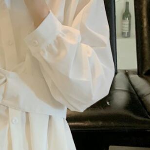 ウエスが絞られているシャツです。