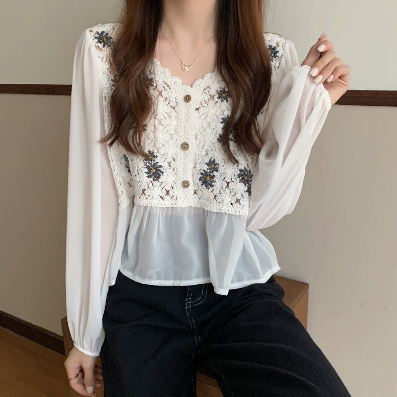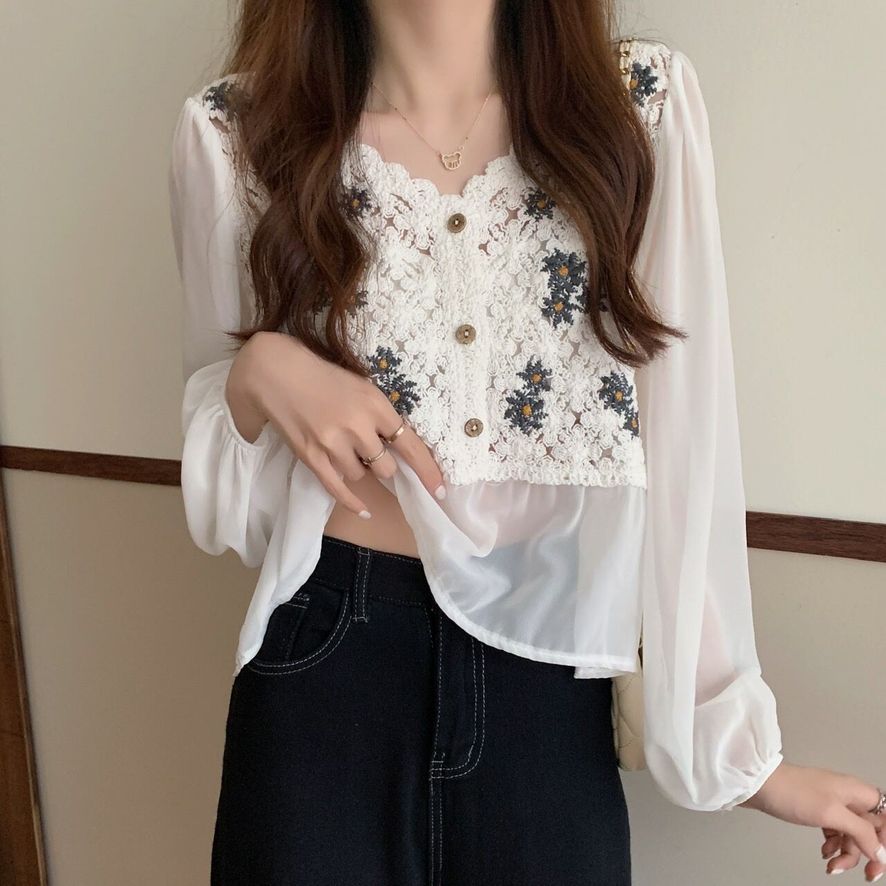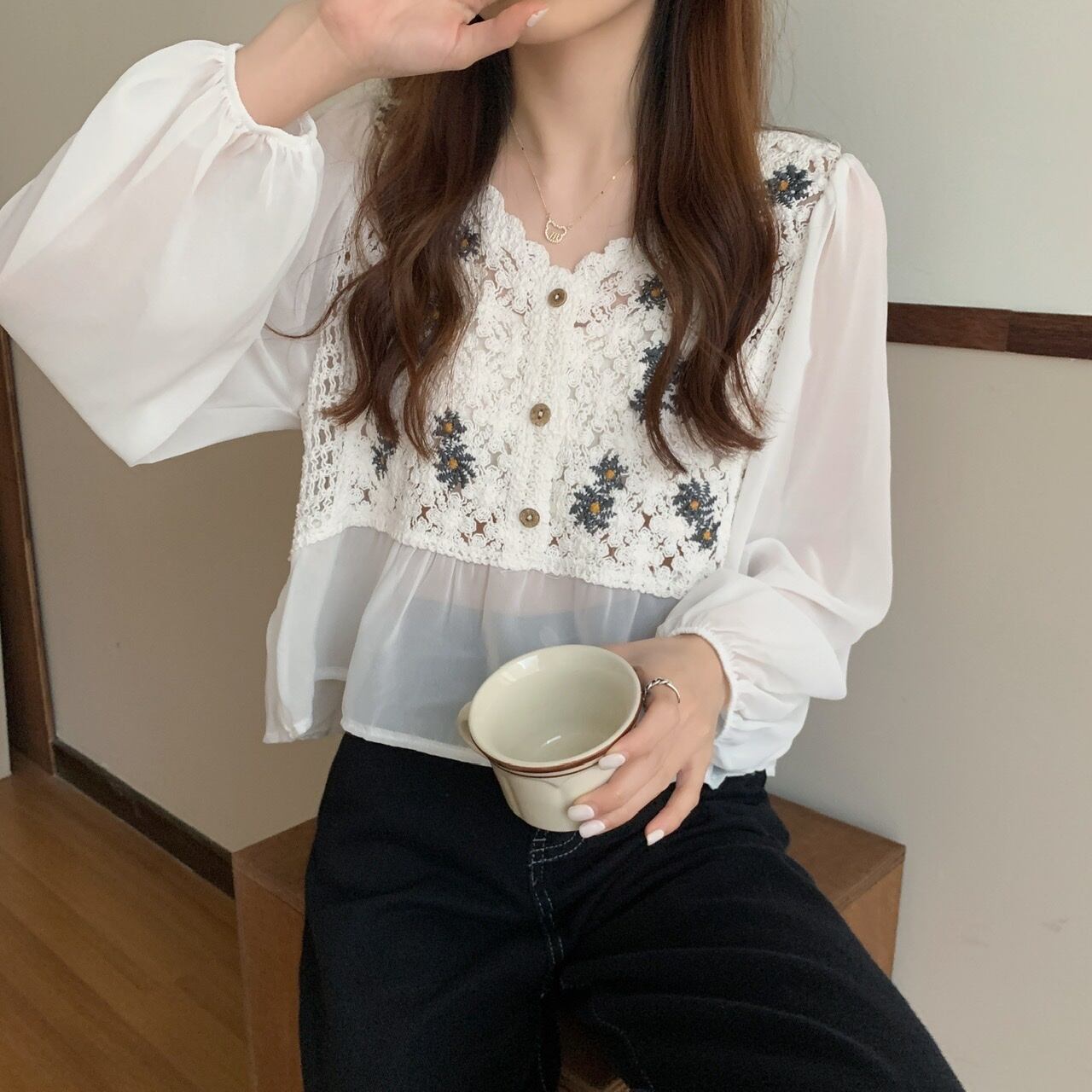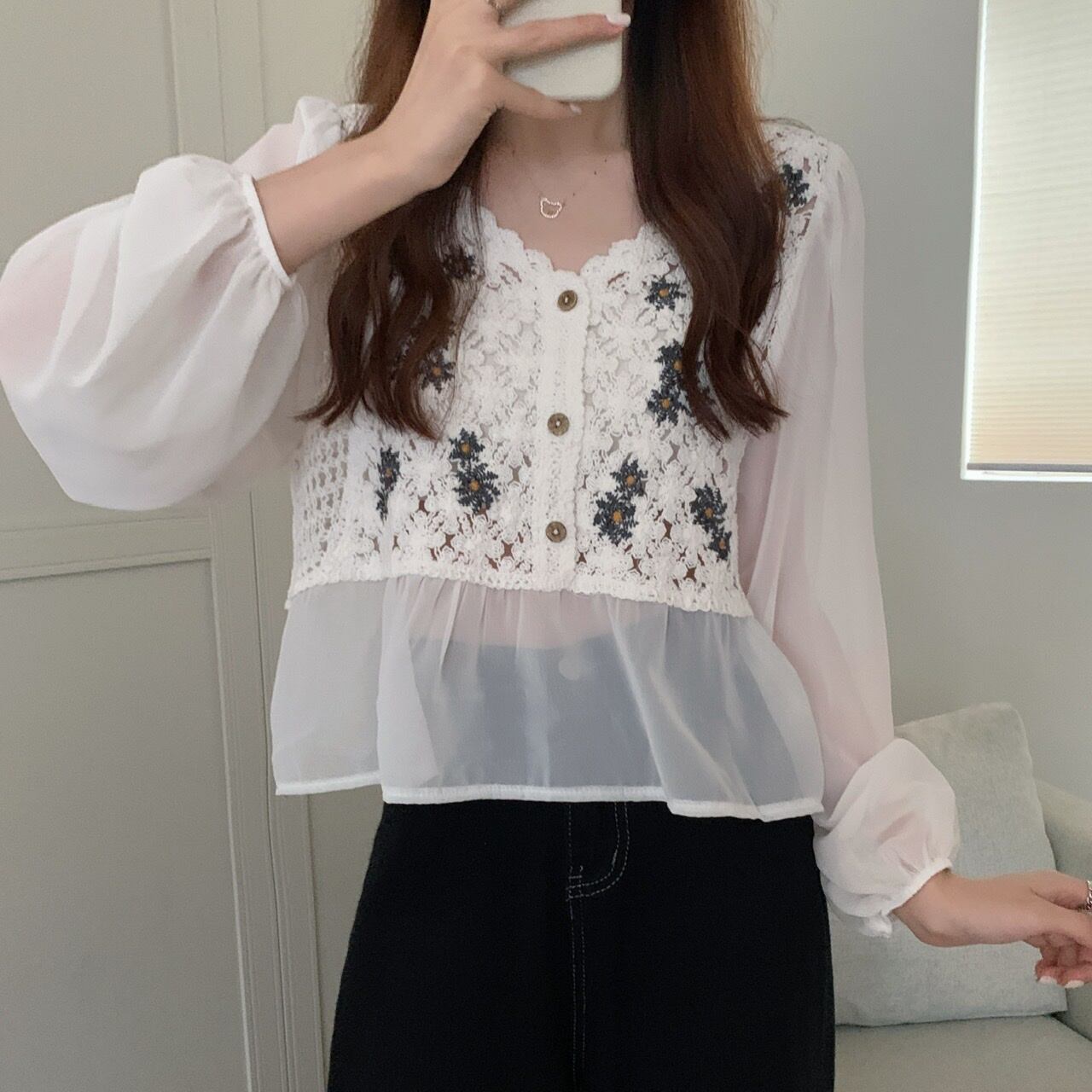 ブラウス部分はシースルー素材です。