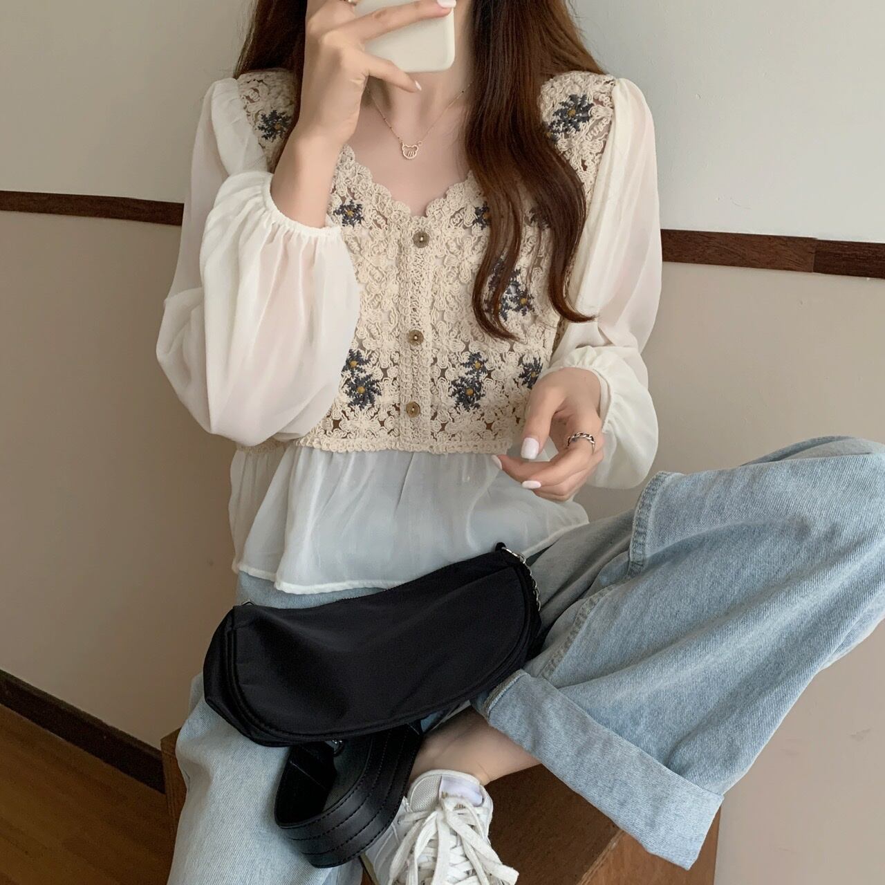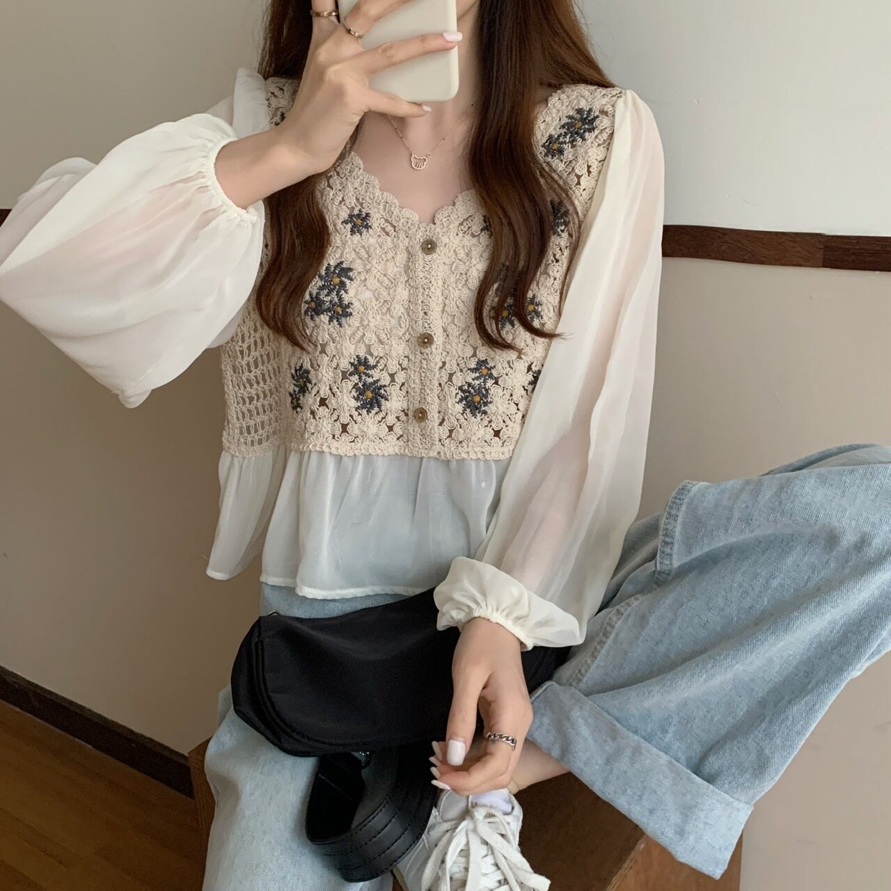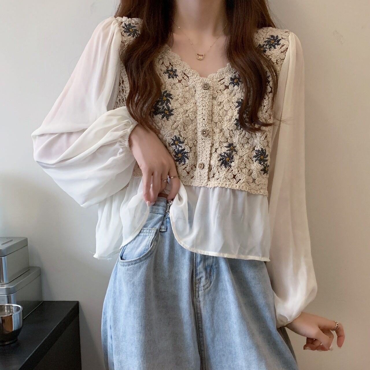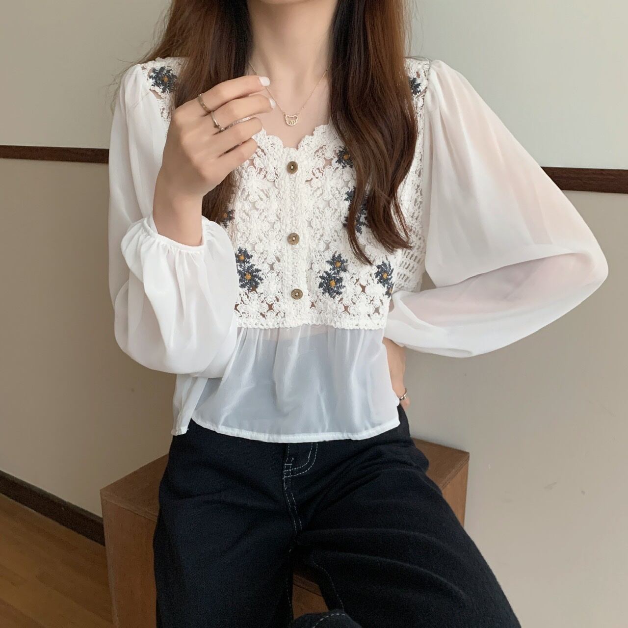 ブラウス部分はシースルー素材です。