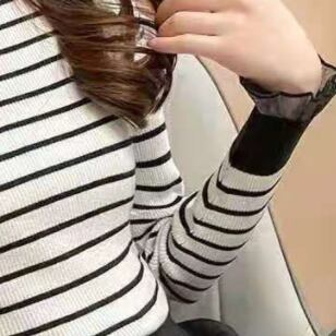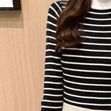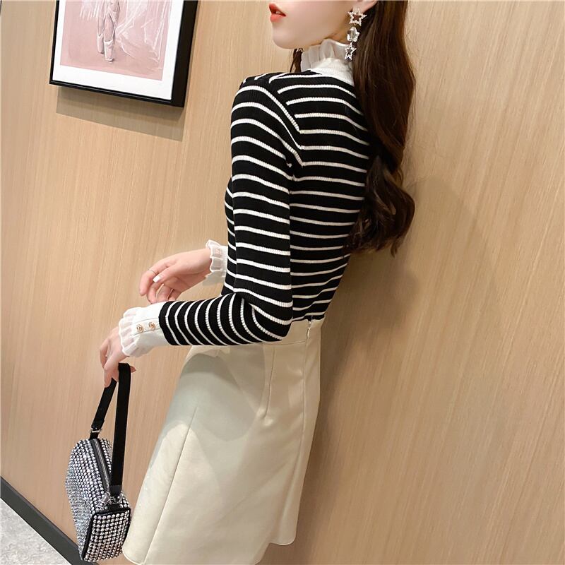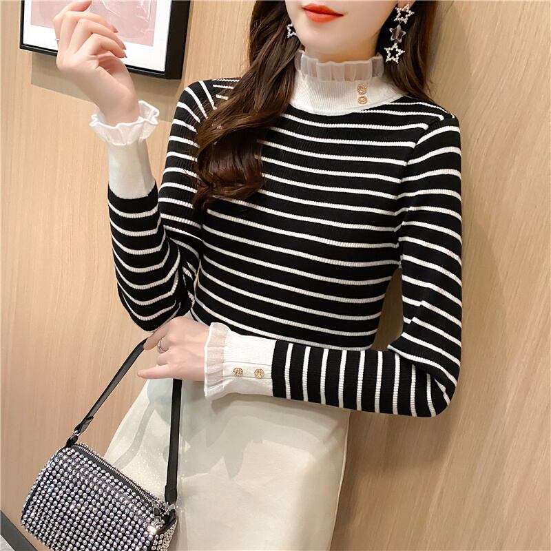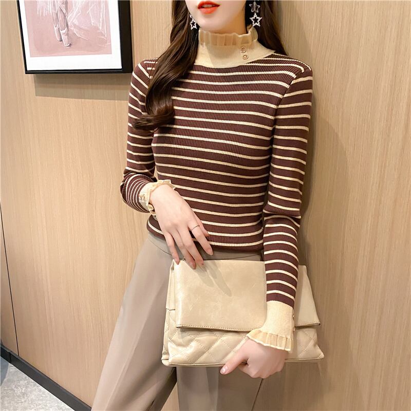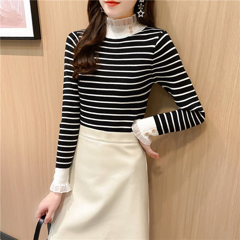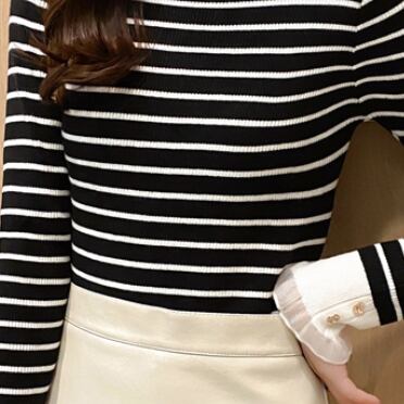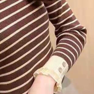 カットソー トップス プルオーバー ウエスタン ブラック 黒 ホワイト 白 ブラウン 茶色 レギュラー丈 袖あり 長袖 スタンドカラー スリム 細身 フリル 大人女子 大人 上品 おしゃれ エレガント レトロ レトロ風 個性的 デザイン 主役級 存在感 柄 ストライプ 縞模様 ボーダー 秋 オータム 10代 20代 30代 40代 レディース 女性用 オフィス ビジネス OL 通勤 学生 通学 デート お出かけ 女子会 着回し 普段使い トレンド ワンサイズ