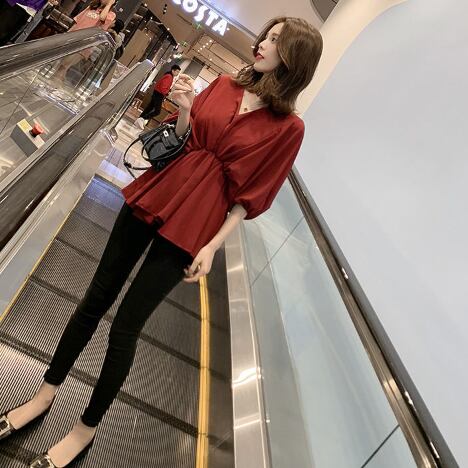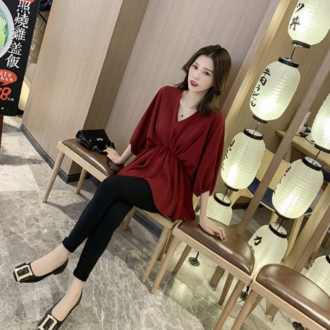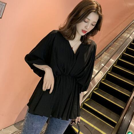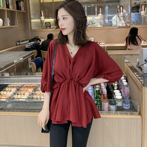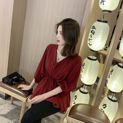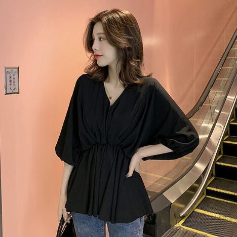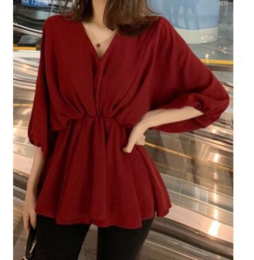 カジュアルシャツ トップス プルオーバー シンプル ブラック 黒 ホワイト 白 レッド 赤 ミディアム丈 袖あり 7分袖 Vネック 綿 コットン ポリエステル 大人女子 大人 上品 おしゃれ きれいめ シンプル カジュアル レトロ レトロ風 こなれ感 ラフ ルーズ シルエット 個性的 デザイン 主役級 存在感 無地 秋 オータム 20代 30代 40代 レディース 女性用 ママ 通勤 学生 通学 着回し 普段使い 3XL 4XL 大きいサイズ M L XL 2XL