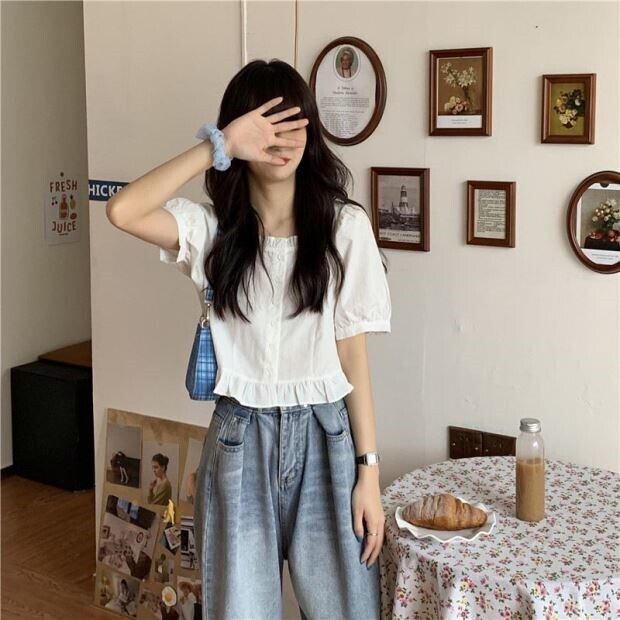 フリル半そでブラウス トップス シャツ ブラウス ショート 半袖 ラウンドネック フリル かわいい 大人可愛い きれいめ シンプル カジュアル 大人 上品 おしゃれ 大人可愛い ラブリー キュート ガーリー 無地 春 夏 10代 20代 30代 40代 レディース 学生 通学 デート 公園デビュー 休日 お散歩 人気 着回し ファッション コーデ スタイル 楽ちん モテ プレゼント ギフト 定番 流行 お得 合わせやすい 好感度 イメージアップ S M L XL 3XL 5XL 大きいサイズ 白 ホワイト