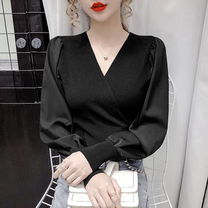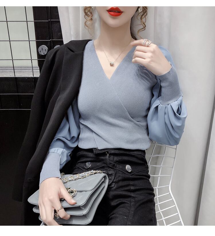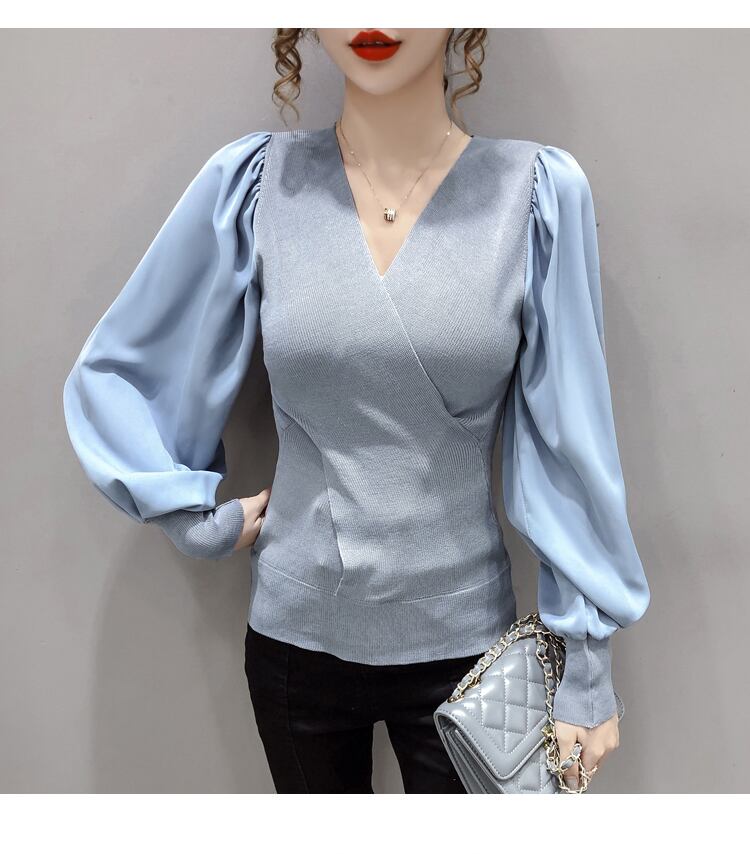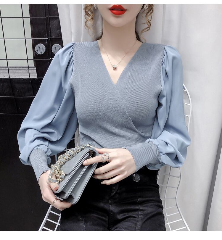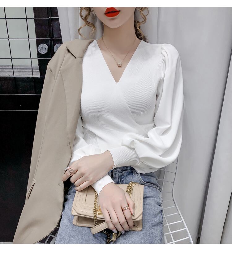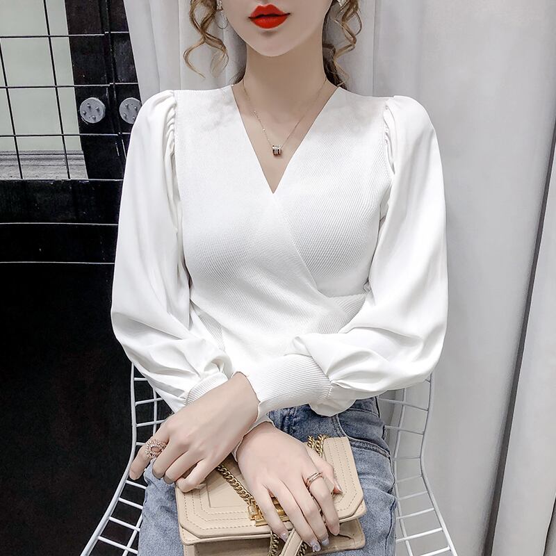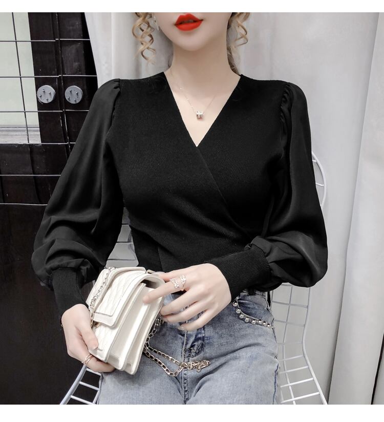 プルオーバー ニット トップス シャツ クラシック ブラック 黒 ホワイト 白 ブルー 青 レギュラー丈 袖あり 長袖 パフスリーブ Vネック スリム タイト 綿 コットン 大人女子 大人 上品 おしゃれ きれいめ シンプル エレガント レトロ レトロ風 こなれ感 ラフ 個性的 デザイン 主役級 存在感 無地 春 スプリング 秋 オータム 20代 30代 40代 レディース 女性用 通勤 学生 通学 デート お出かけ 女子会 着回し 普段使い ワンサイズ