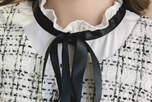 上品なツィード生地を使用した、ツィード膝丈ワンピース。大人可愛いデザインで、春や秋にぴったりなアイテムです。ラウンドネックにフリルとリボンのアクセントが加わり、女性らしい雰囲気を演出します。