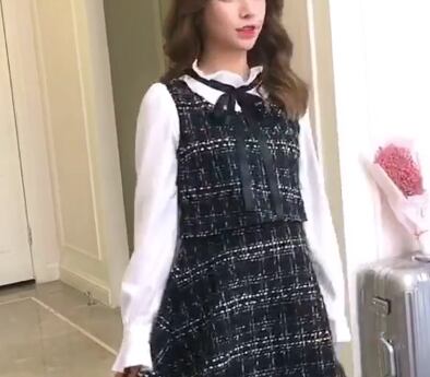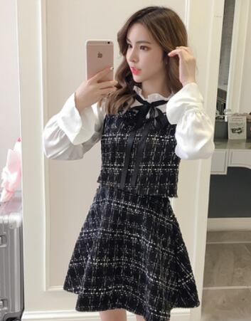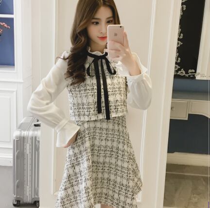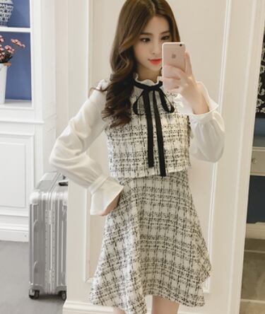 フェミニンなツィード膝丈ワンピースです。