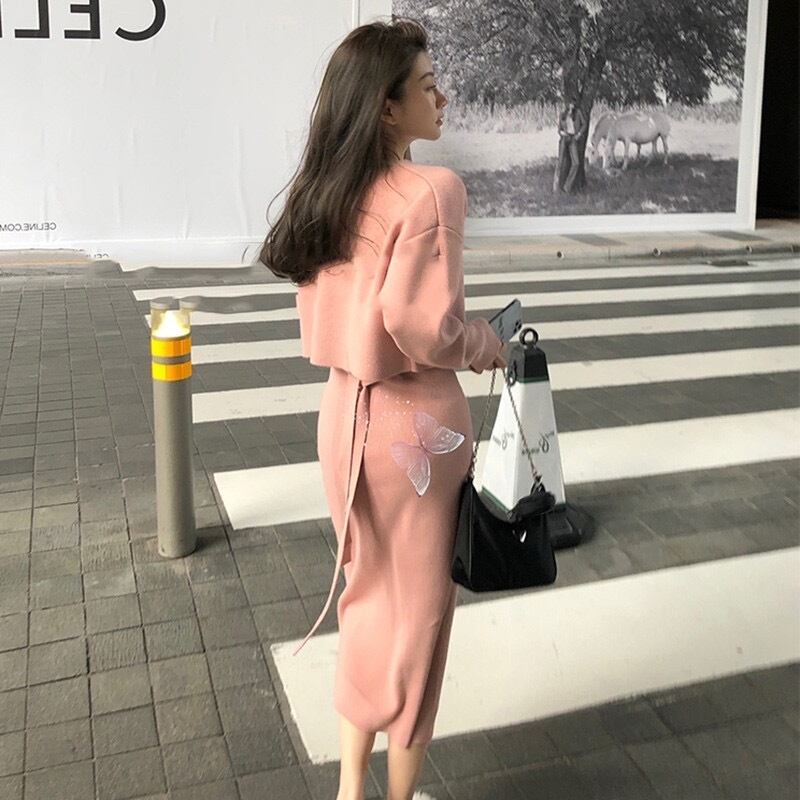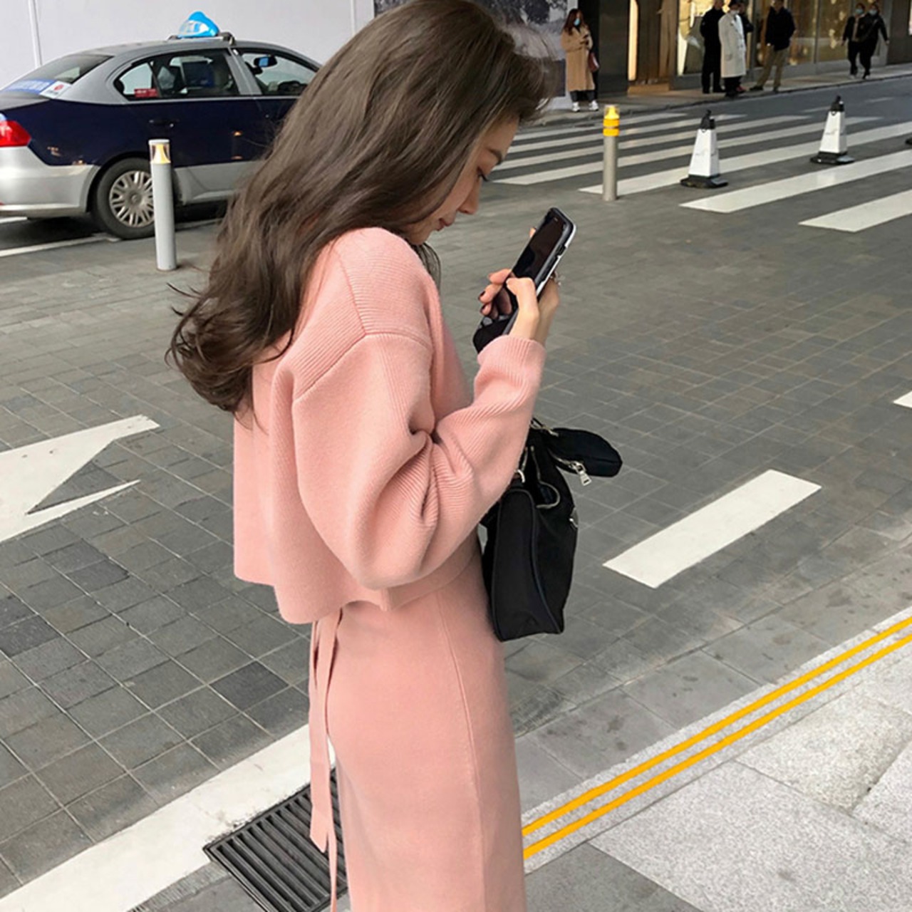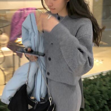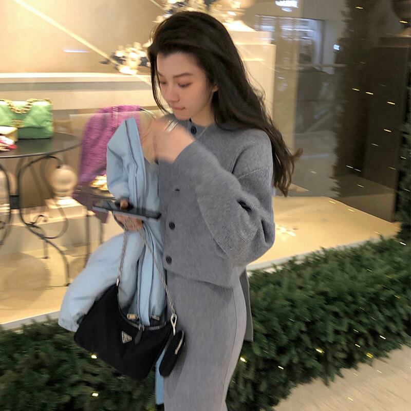 セットアップ ツーピースセット トップス スカート カーディガン グレー 灰色 ピンク 袖あり 長袖 スリム タイト 細身 シングルブレスト ボタン 2点セット 大人女子 大人 上品 おしゃれ きれいめ シンプル カジュアル レトロ レトロ風 こなれ感 ラフ キュート ガーリー かわいい 女子 個性的 デザイン 主役級 存在感 無地 秋 冬 10代 20代 30代 レディース 女性用 デート お出かけ 女子会 イベント リゾート 旅行 着回し 普段使い S M L XL