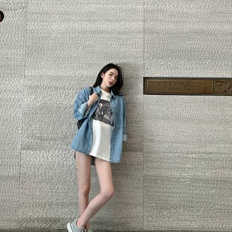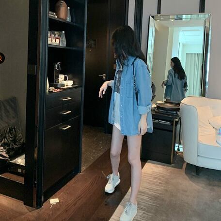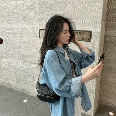デニムシャツ トップス シャツ シンプル ブルー 青 レギュラー丈 袖あり 長袖 襟付き シングルブレスト ボタン 大人女子 大人 上品 おしゃれ かっこいい クール カジュアル レトロ レトロ風 こなれ感 ラフ ルーズ シルエット 主役級 存在感 無地 春 スプリング 秋 オータム 10代 20代 30代 40代 レディース 女性用 ママ 学生 通学 デート お出かけ 女子会 公園デビュー 着回し 普段使い 重ね着 ファッション コーデ 定番 細見え スタイル S M