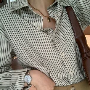 商品名にふさわしい、一枚持っていると重宝するストライプシャツ。ブルーの色味で、大人女子にぴったりの上品さをもち合わせています。シンプルながらも細身のシルエットで、スマートな印象を与えます。着回し力が抜群のアイテムで、大人可愛いスタイリングから、クールでモード系なスタイリングまで、その日の気分に合わせて自由自在にコーディネートできます。